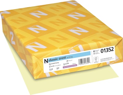 <B>Neenah Paper : Classic Crest Premium Paper, Baronial Ivory, 24lb, Letter, 500 Sheets </B><BR> Premium watermarked papers. Guaranteed for use in laser or inkjet printers and high-speed copiers. Acid-free for archival quality. Smooth finish enhances professional identity. Perfect for letterhead, business proposals and newsletters. Ideal for desktop and other printing applications requiring sharp reproduction. Global Product Type: Resume/Stationery Paper; Paper Weight: 24 lbs.; Paper Color(s): Baronial Ivory; Design: N/A.:<BR>Manufactured by.: Neenah Paper