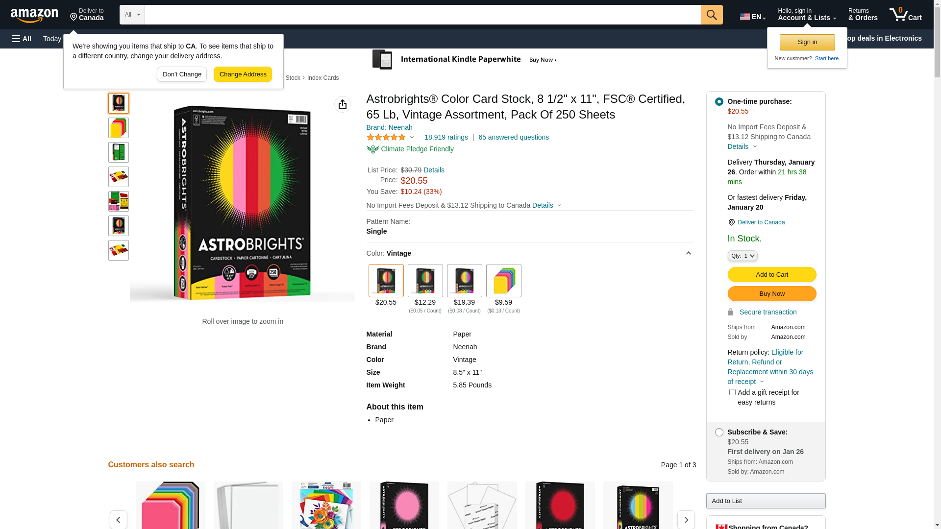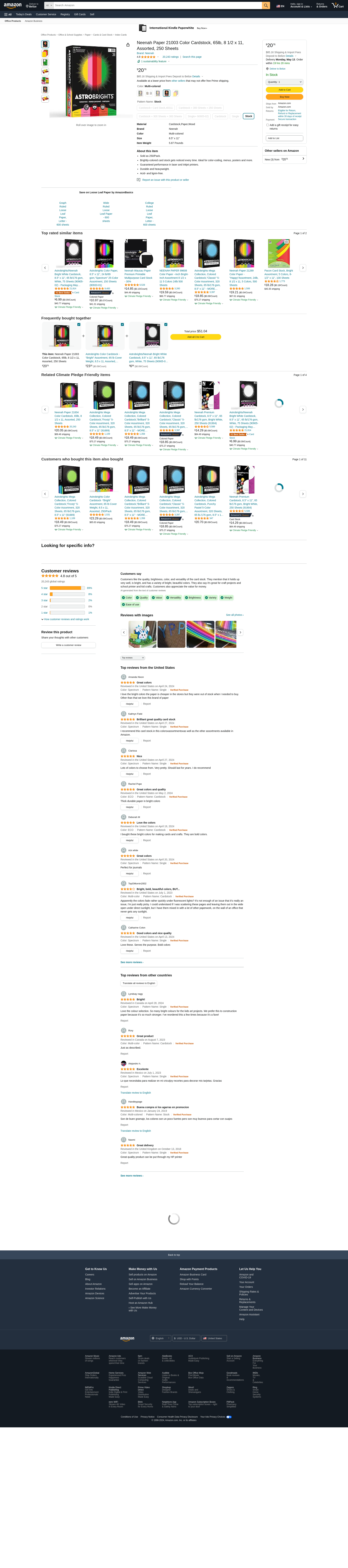 Neenah Paper 21003 Color Cardstock, 65lb, 8 1/2 x 11, Assorted, 250 Sheets