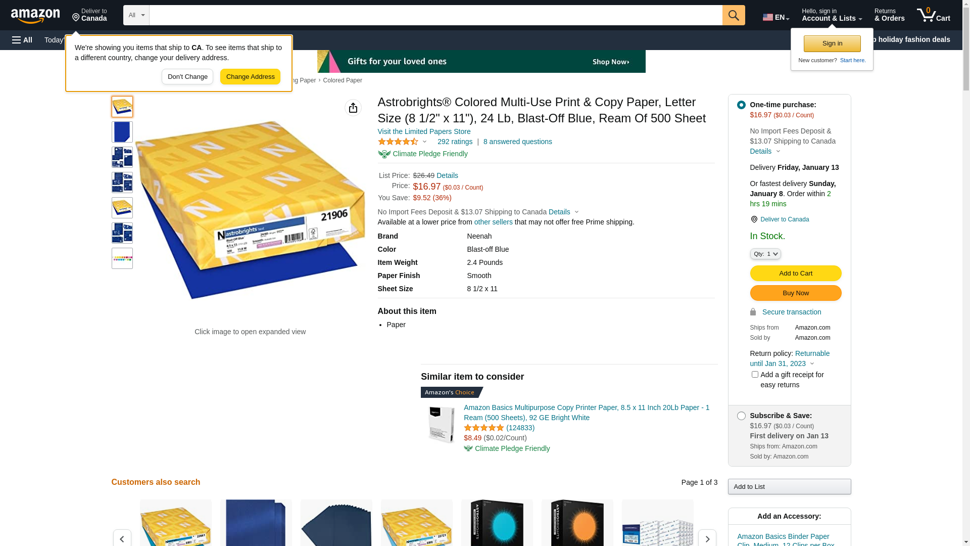 Astrobrights Color Paper, 8.5” x 11”, 24 lb/89 gsm, Blast-Off Blue, 500 Sheets (21906)