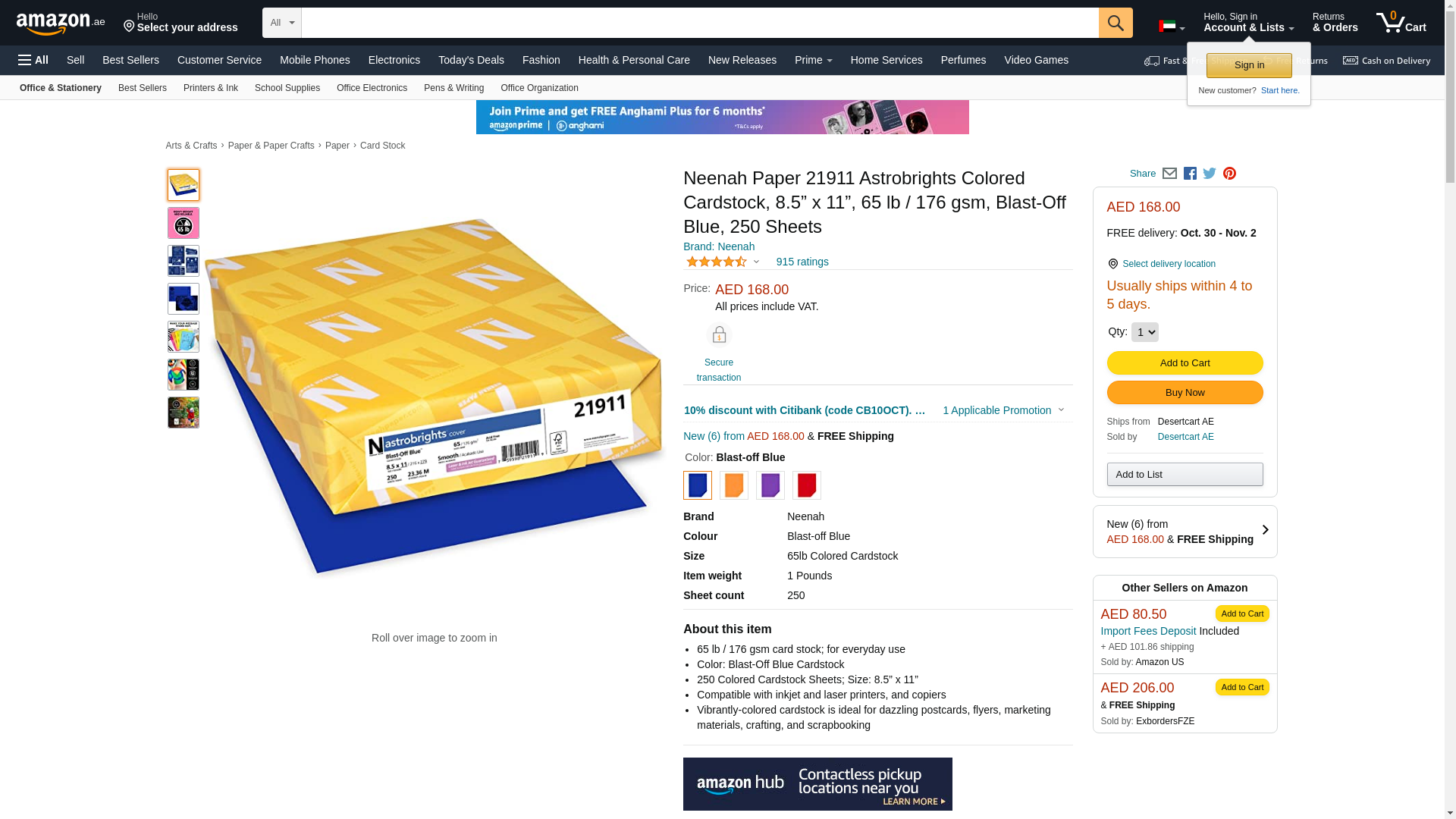 Neenah Paper 21911 Color Cardstock, 65lb, 8 1/2 x 11, Blast-Off Blue, 250 Sheets