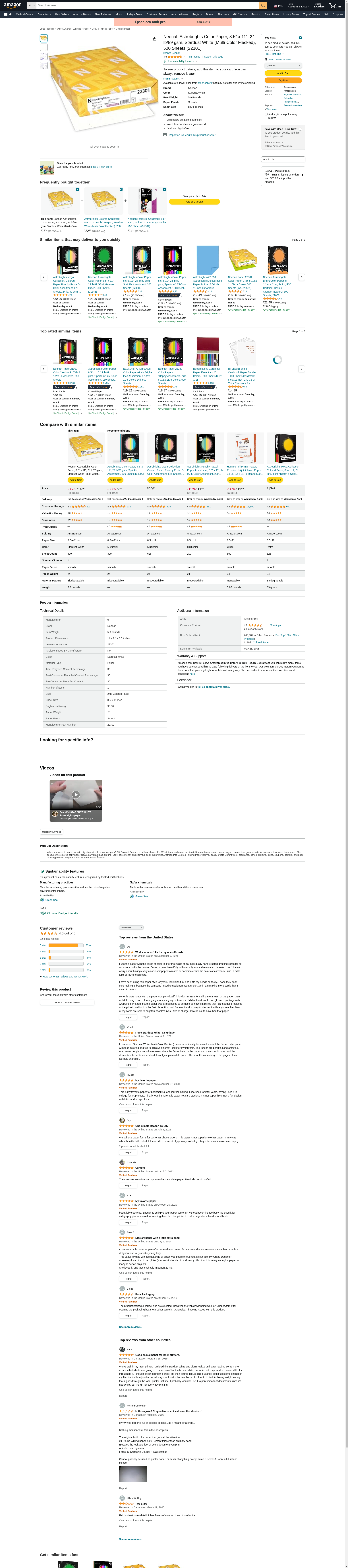 Neenah Astrobrights Color Paper, 8.5” x 11”, 24 lb/89 gsm, Stardust White (Multi-Color Flecked), 500 Sheets (22301)
