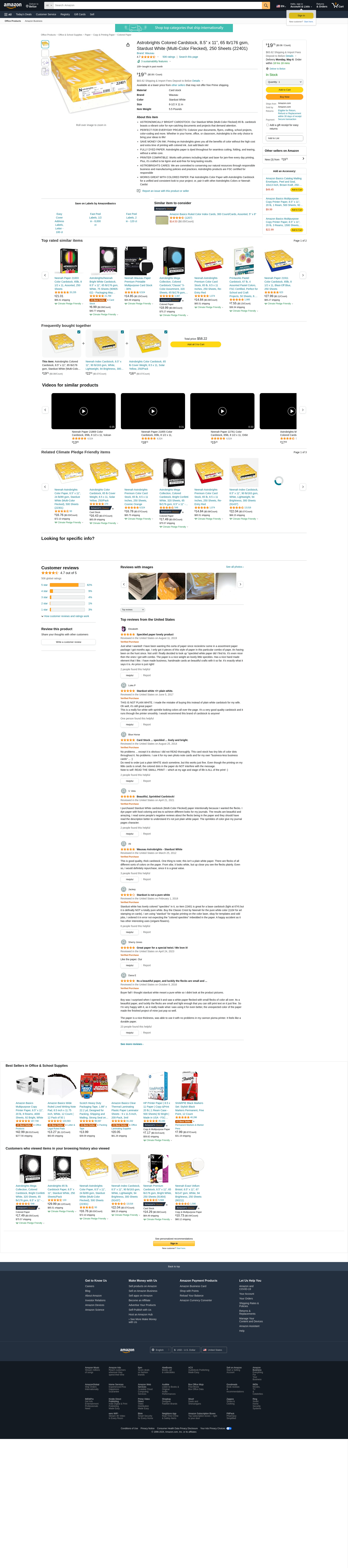 Astrobrights Colored Cardstock, 8.5” x 11”, 65 lb/176 gsm, Stardust White (Multi-Color Flecked), 250 Sheets (22401)