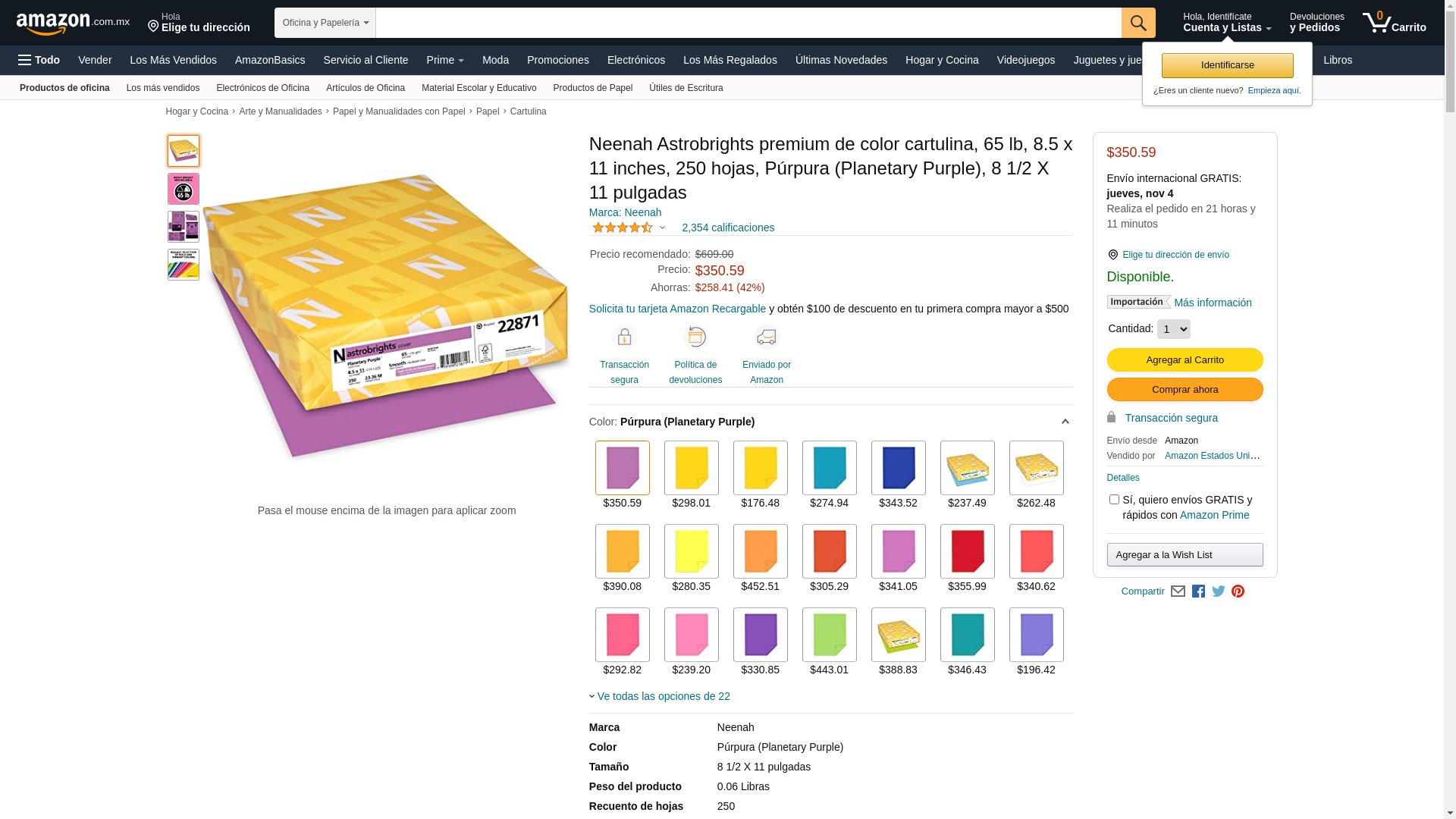 Neenah Paper 22871 Color Cardstock, 65lb, 8 1/2 x 11, Planetary Purple, 250 Sheets