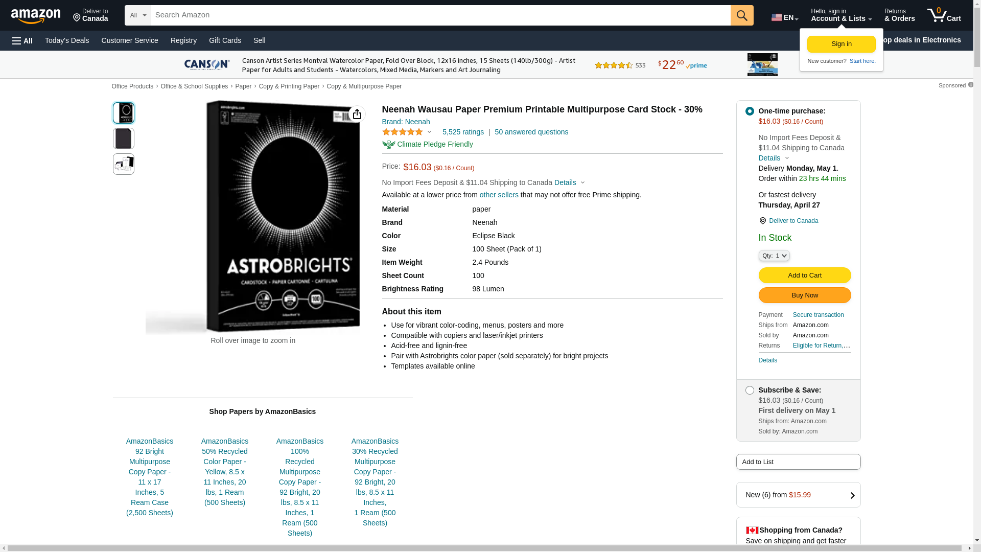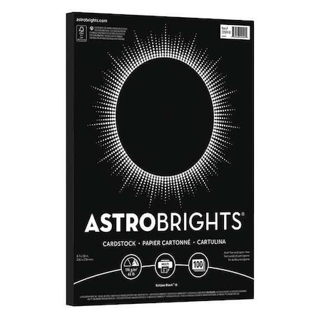 Astrobrights Colored Card StockBold colors get all the attention! Heavyweight stock is ideal for applications and projects that need the durability to withstand repeated use. Perfect for direct mail, business cards, table tents, presentations and more. Smooth finish. Laser, inkjet and copier performance guaranteed. Acid- and lignin-free. This product was made from wood that came from a certified managed forest. Size: 8 1/2 x 11; Paper Color(s): Eclipse Black™; Paper Weight: 65 lb; Sheets Per Unit: 100. Neenah Paper Astrobrights Colored Card Stock, 65 lb., 8-1/2 x 11, Eclipse Black, 100 Sheets Global Product Type: Paper-Card Stock Size: 8 1/2 x 11 Paper Color(s): Eclipse Black Paper Weight: 65 lb Sheets Per Unit: 100 Machine Compatibility: Inkjet Printers; Laser Printers; Copiers Compliance Standards: FSC Certfied Pre-Consumer Recycled Content Percent: 0% Post-Consumer Recycled Content Percent: 0% Total Recycled Content Percent: 0%