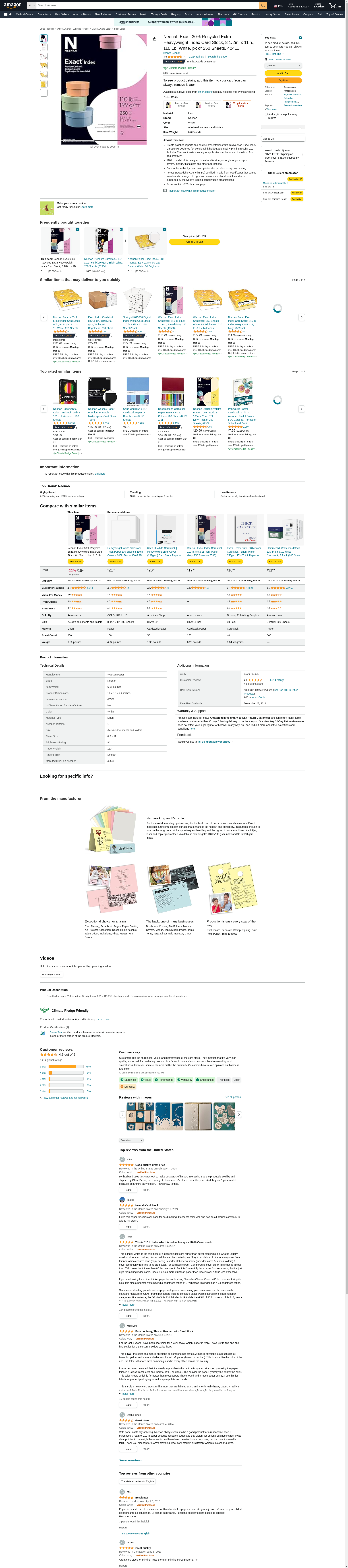 Neenah Exact 30% Recycled Extra-Heavyweight Index Card Stock, 8 1/2in. x 11in., 110 Lb, White, pk of 250 Sheets, 40411