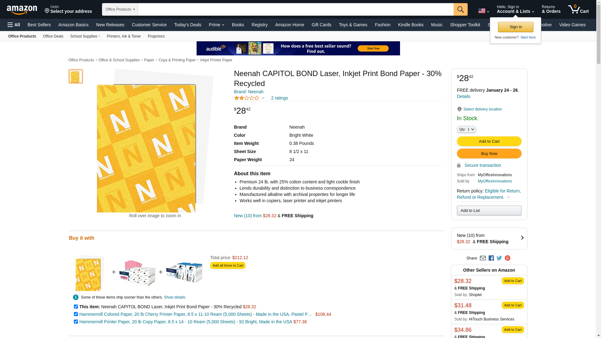 Neenah CAPITOL BOND Laser, Inkjet Print Bond Paper - 30% Recycled