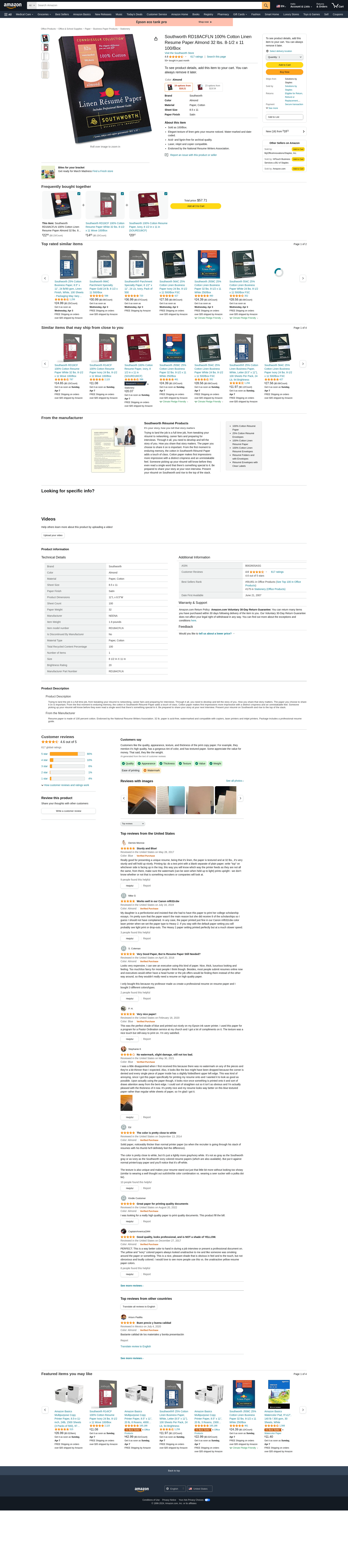 Southworth Linen Résumé Paper, Almond, 32 Pounds, 100 Count (RD18ACFLN)