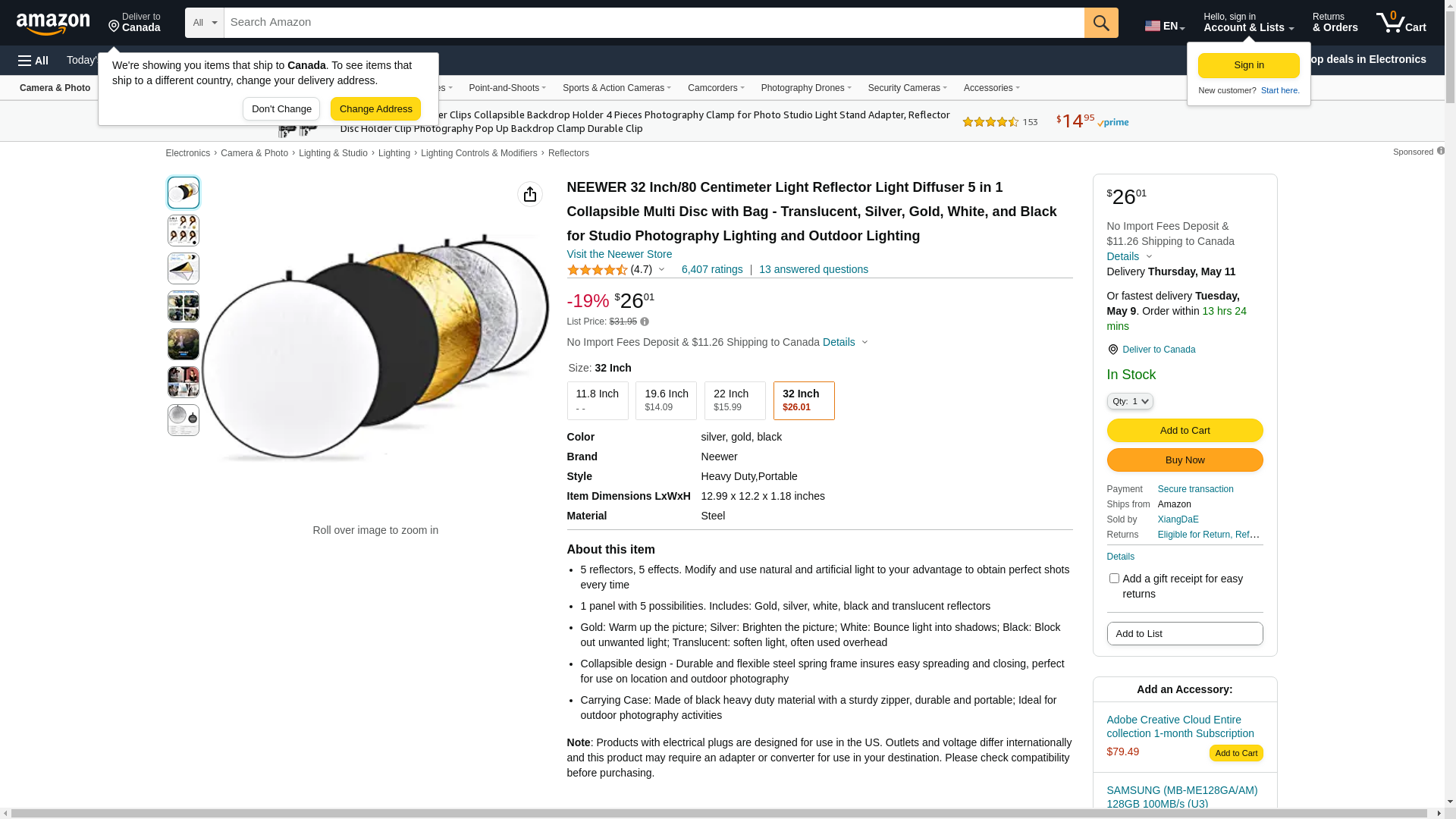 <p><b>Description:</b> <p>These reflectors can fit any standard reflector holders <p>The translucent reflector acts as a diffuser between the light source and the subject, which can soften light <p>The silver reflector is used to enhance the light in low light situations <p>The gold reflector is perfect for creating warm outdoor sunset scenes <p>The white reflector develops a soft, clean light and it also helps to decompress the flash <p>The black reflector makes a shadow and is perfect for creating a certain dark and mysterious mood <p>Durable and flexible steel spring frame insures easy spreading and closing <p>Carrying case is made of black heavy duty material with a sturdy zipper, which is durable and portable and suitable for outdoor photography activities <p><b>Specification:</b> <p><b>Weight: 16.65 ounces / 472 grams <p>Size : 32'' / 80cm <p><b>Package Contents:</b> <p>1 x 5-in-1 32'' Reflector <p>1 x Carrying Case
