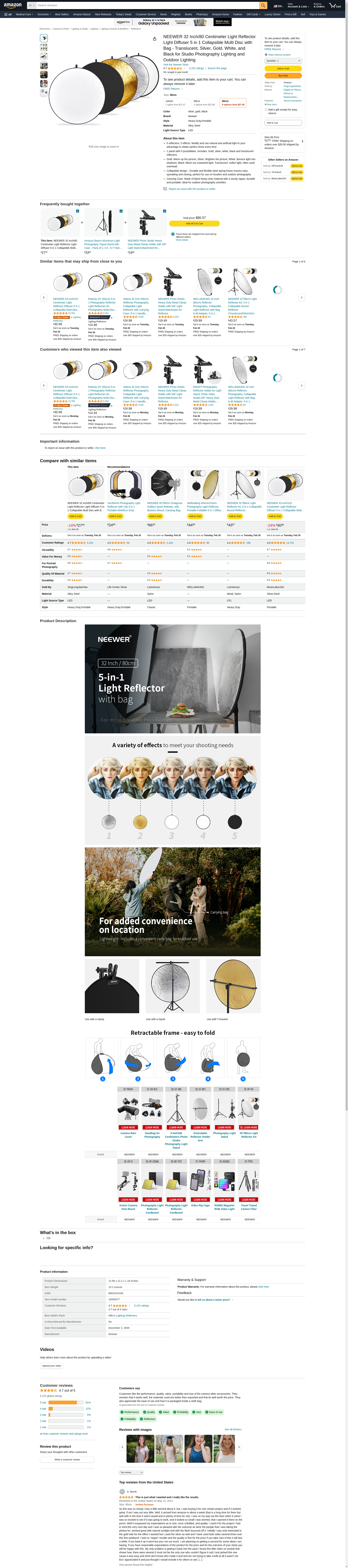 | Feature | Kit Includes: (1) 5-in-1 Reflector (1) Carrying Case |