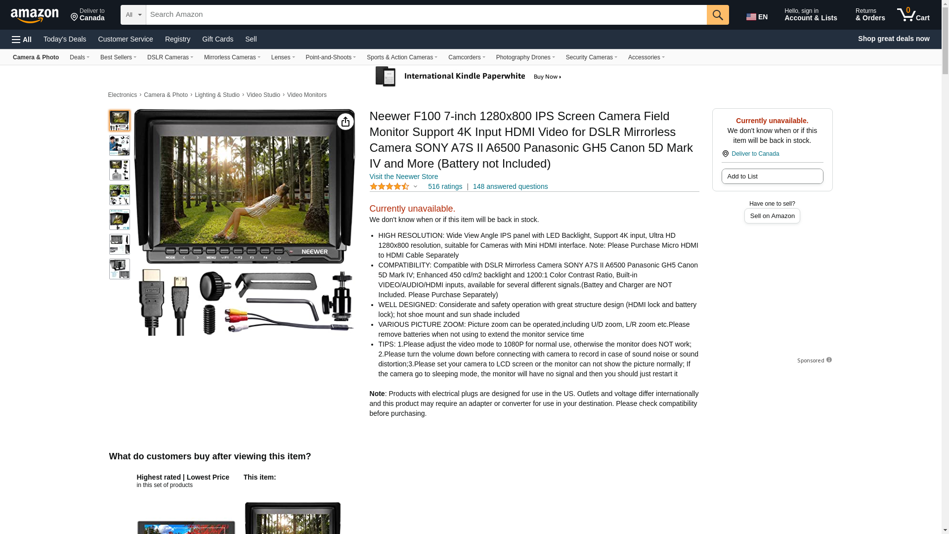 | Feature | Warm Reminder: For 4K cameras, please adjust the video mode to 1080P for normal use; otherwise the monitor does NOT work; The item power source is F550 Battery, and Battery is NOT Included |