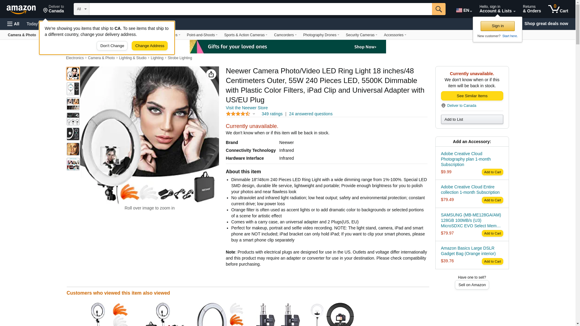 Neewer Camera Photo/Video LED Ring Light 18 inches/48 Centimeters Outer, 55W 240 Pieces LED, 5500K Dimmable with Plastic Color Filters, iPad Clip and Universal Adapter with US/EU Plug: Maxedbuy.com