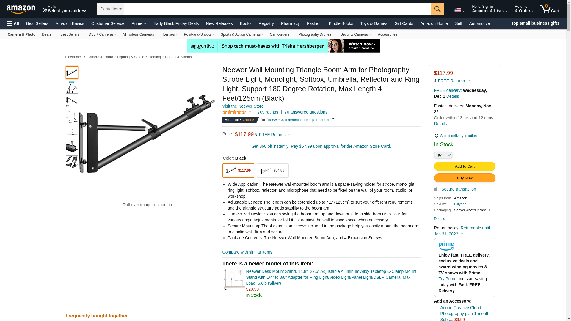 Neewer Triangle Wall Mounting Boom Arm for Photography Studio Video Strobe Lights Monolights Softboxes Umbrellas Reflectors, 180 Degree Flexible Rotation, Max Length 49 inches/125 Centimeters (Black): Maxedbuy.com