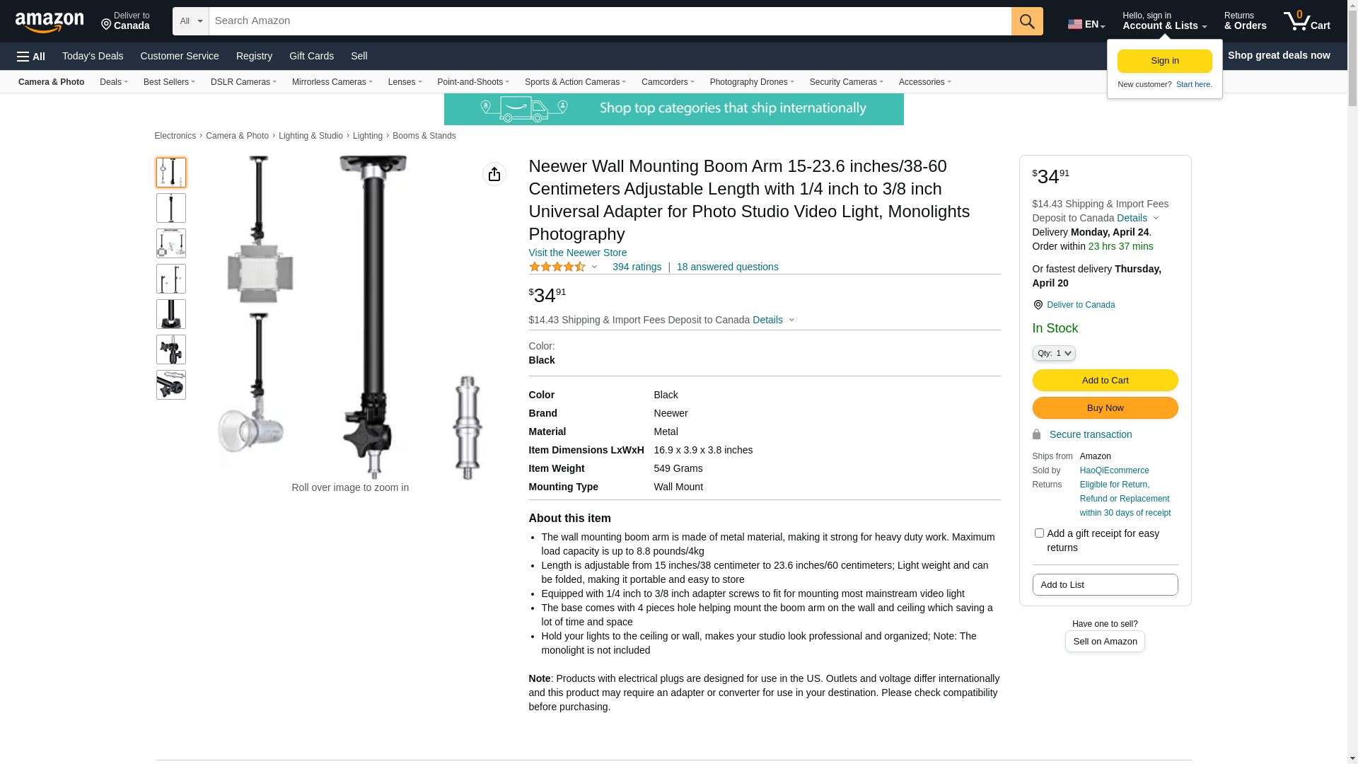 Neewer Wall Mounting Boom Arm 15-23.6 inches/38-60 Centimeters Adjustable Length with 1/4 inch to 3/8 inch Universal Adapter for Photo Studio Video Light, Monolights Photography: Maxedbuy.com