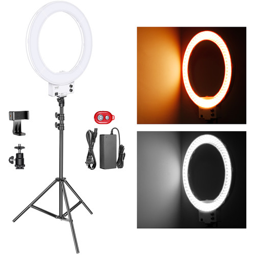 - KIT INCLUDES: (1)18-inch LED Ring Light (White), (1)6.5 feet/200cm Light Stand, (1)Smart Phone Holder, (1)Hot Shoe Adapter with 1/4" Screw, (1)Power Adapter Supply with US Plug; NOTE: Carrying Bag NOT included
