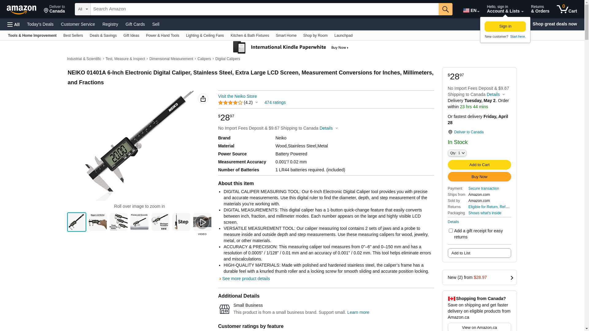 NEIKO 01401A 6-Inch Electronic Digital Caliper, Stainless Steel, Extra Large LCD Screen, Measurement Conversions for Inches, Millimeters, and Fractions, 1 LR44 batteries required. (included)