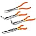 NEIKO 02105A (4) Long Nose Plier 11” Long Reach, Straight, Angle, Curved Pliers, 45 & 90 Degree, bent Head Needle Nose Pliers Set for Mechanics, Long Handle Pliers