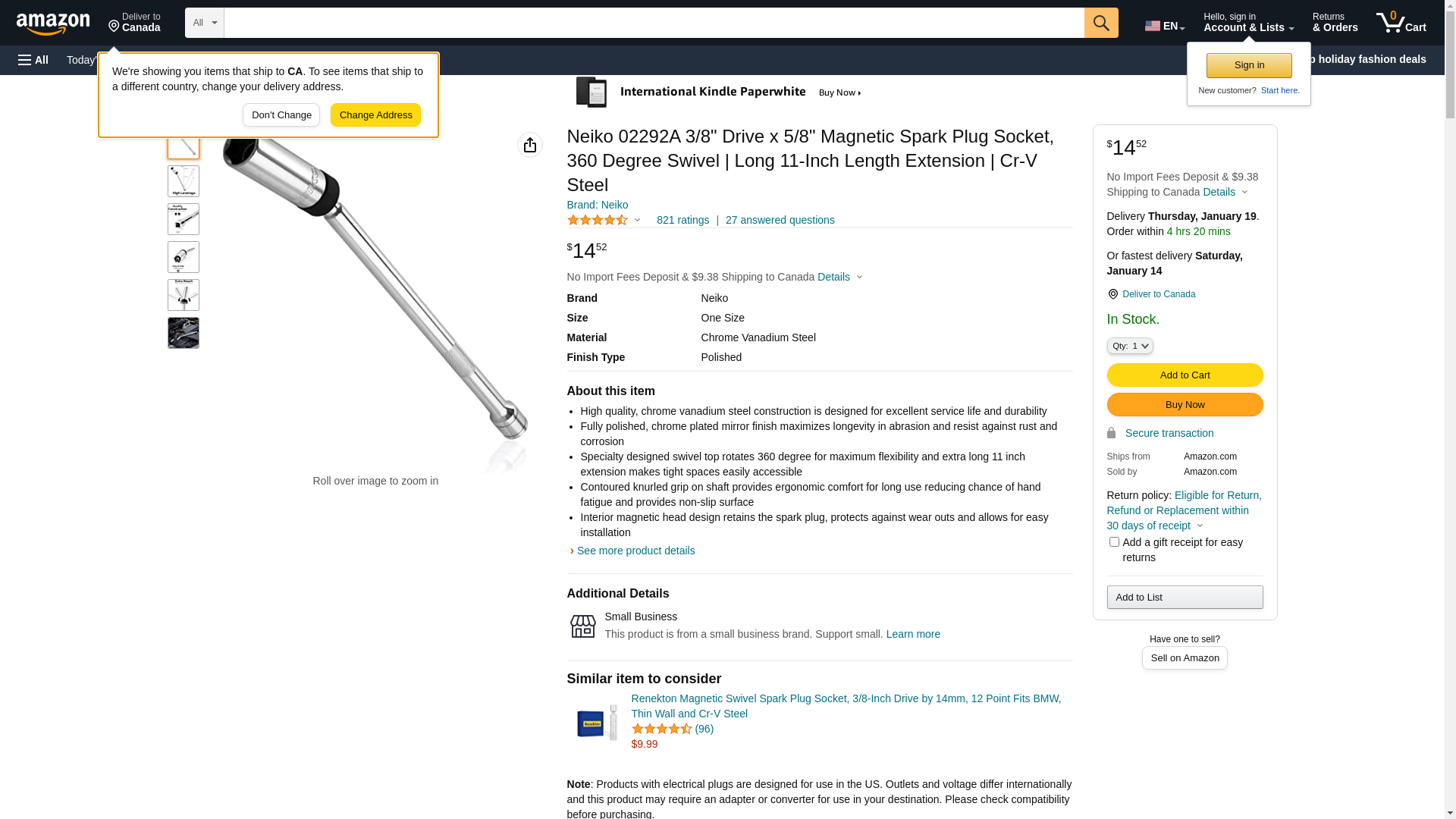 Neiko 02292A 3/8" Drive x 5/8" Magnetic Spark Plug Socket, 360 Degree Swivel | Long 11-Inch Length Extension | Cr-V Steel