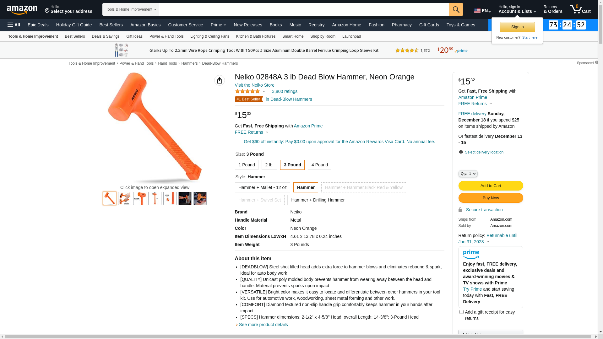 - [SPECS] Hammer dimensions: 2-1/2" x 4-5/8" Head, overall Length: 14-3/8"; 3-Pound Head
