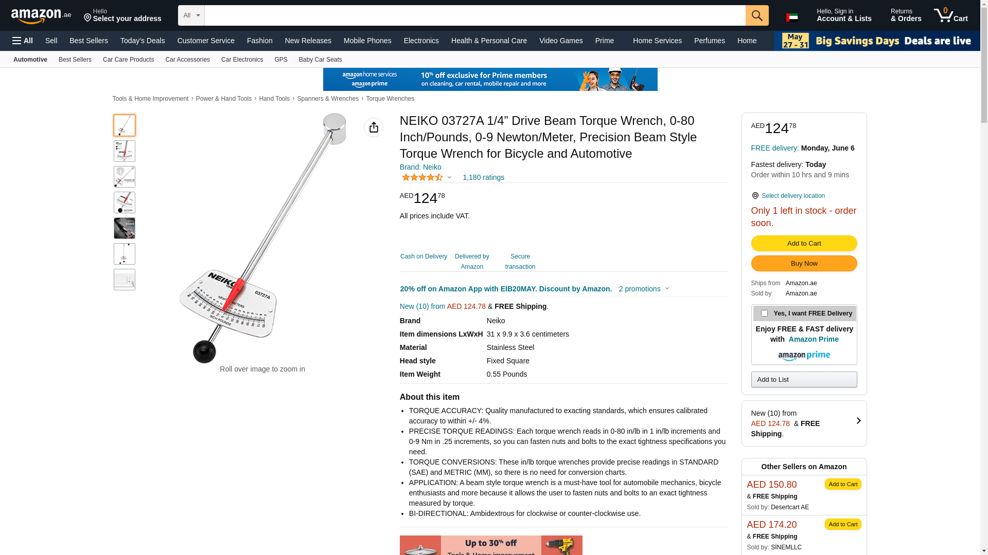 Neiko 03727A 1/4-Inch-Drive Beam Torque Wrench, SAE and MM Bicycle and Automotive Wrench, Reads in 0–80 Inches/Pounds and 0–9 Newton/Meter Increments