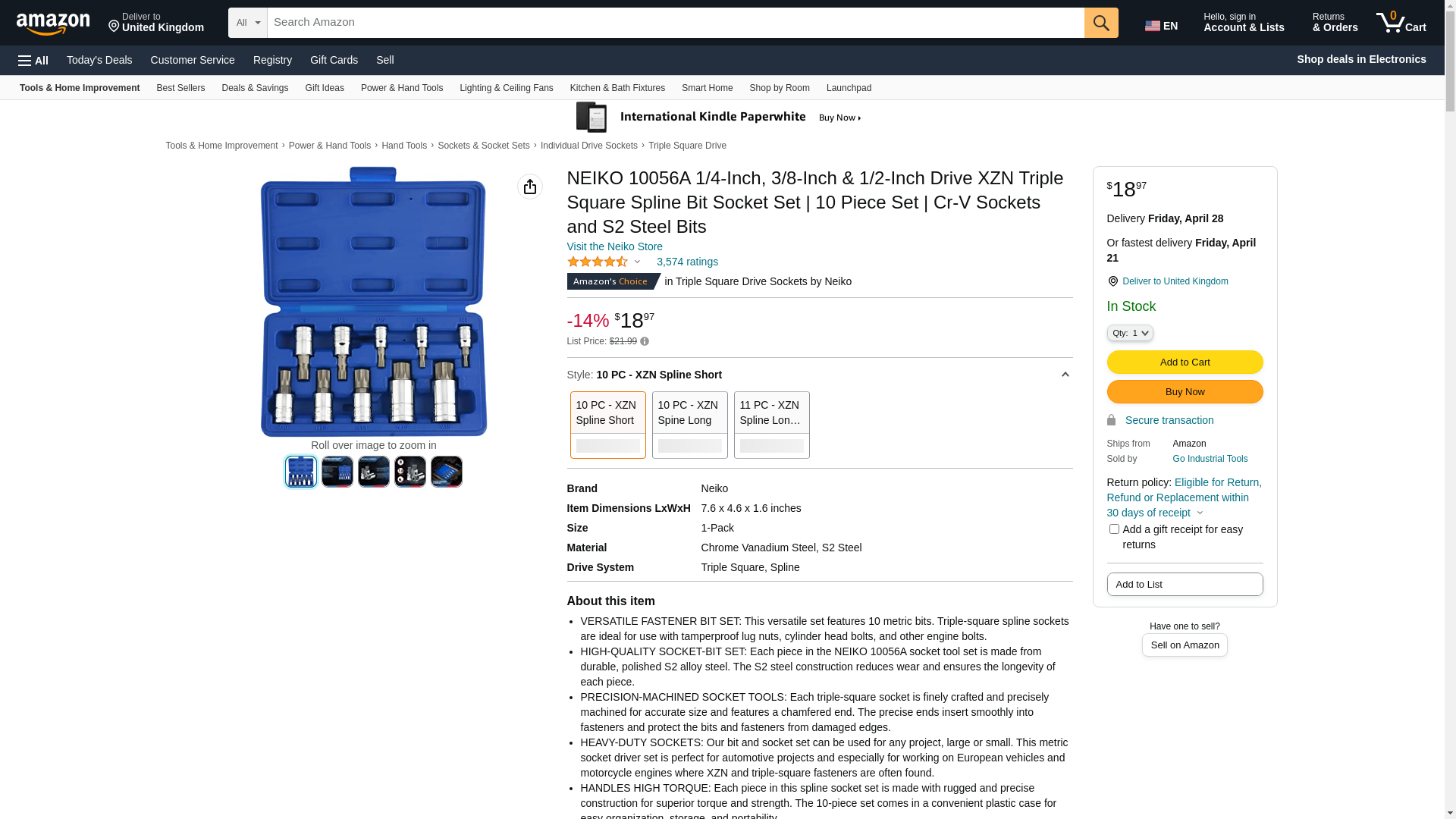 NEIKO 10056A 1/4-Inch, 3/8-Inch & 1/2-Inch Drive XZN Triple Square Spline Bit Socket Set | 10 Piece Set | Cr-V Sockets and S2 Steel Bits