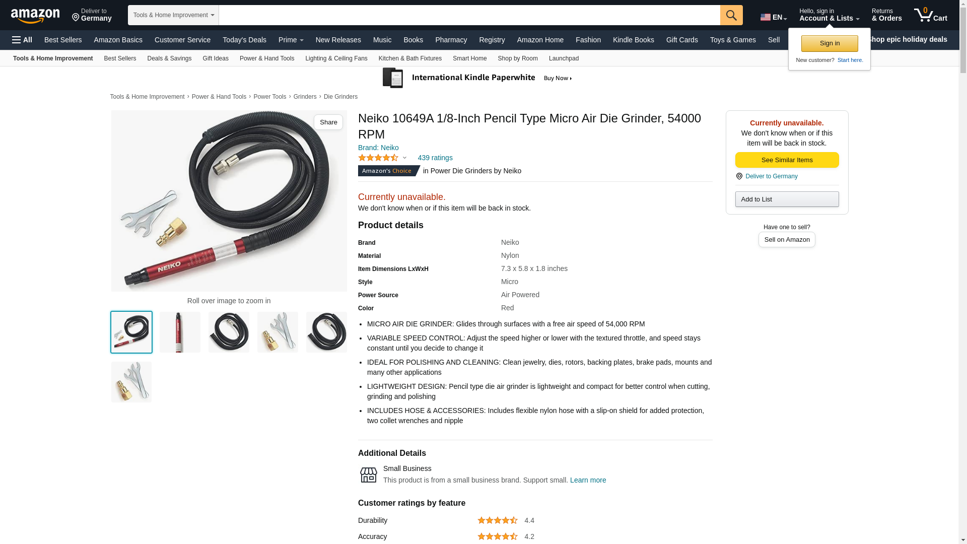 NEIKO 10649A Micro Air Die Grinder | 1/8" (3mm) Capacity | Pencil Type | 54,000 RPM | For Cleaning Dies, Rotors, Backing Plates, Brake Pads, Mounts, Etc.