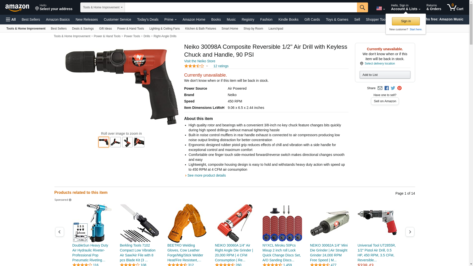 Neiko 30098A Composite Reversible 1/2" Air Drill with Keyless Chuck and Handle, 90 PSI