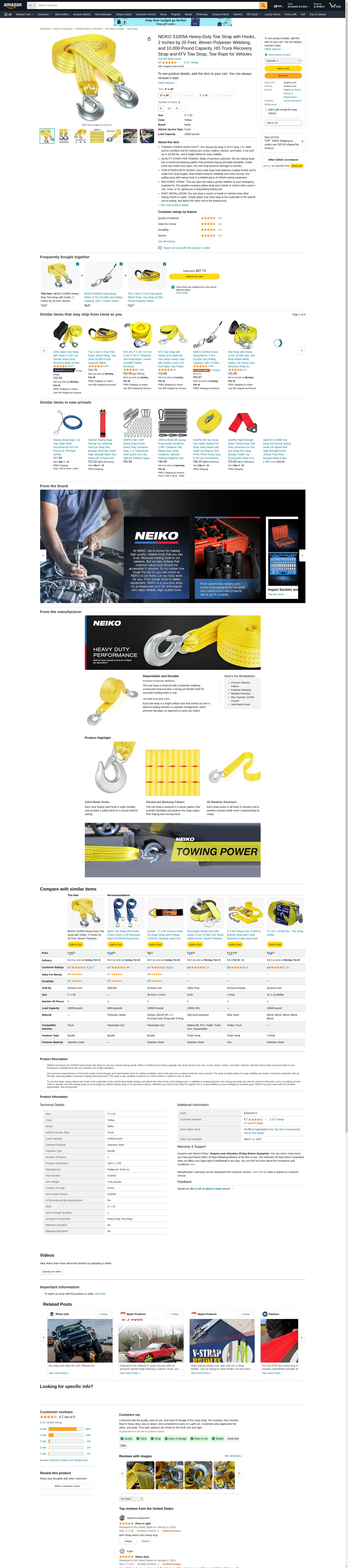 - TOWING STRAPS HEAVY-DUTY: Our strong tow strap is 20 FT long, 2 In. wide, and an excellent tool for towing cars, trucks, trailers, tractors, and boats. It can pull up to 10,000 lbs. and is bright yellow for easy visibility.