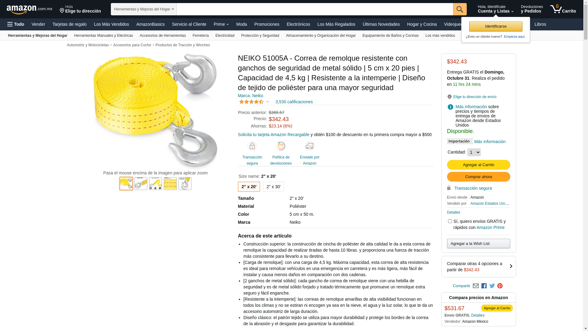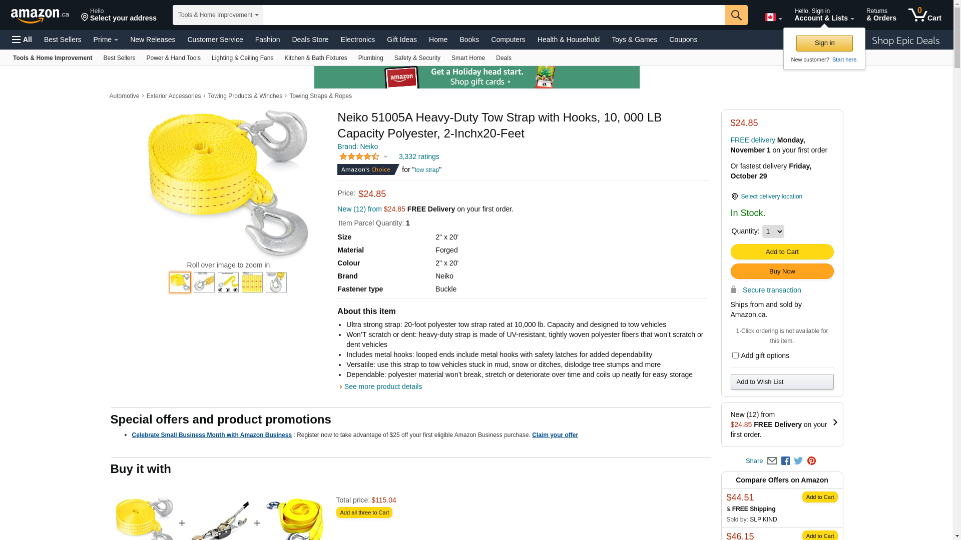 NEIKO 51005A Heavy-Duty Tow Strap with Hooks, 2 Inches by 20 Feet, Woven Polyester Webbing, and 10,000-Pound Capacity, HD Truck Recovery Strap and ATV Tow Strap, Tow Rope for Vehicles
