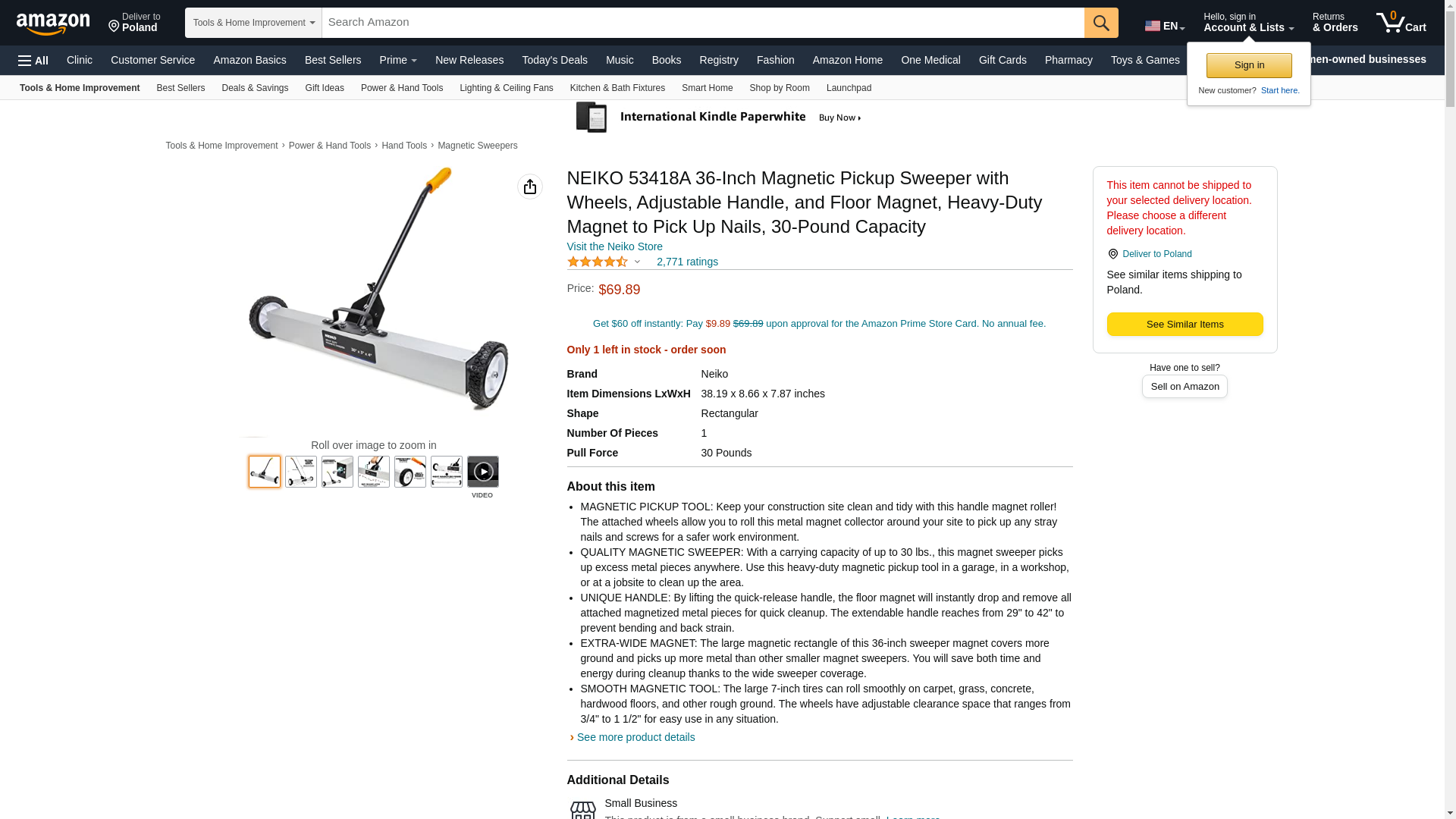 Neiko 53418A Magnetic Pick-Up Sweeper with Wheels 30 Lb, 36