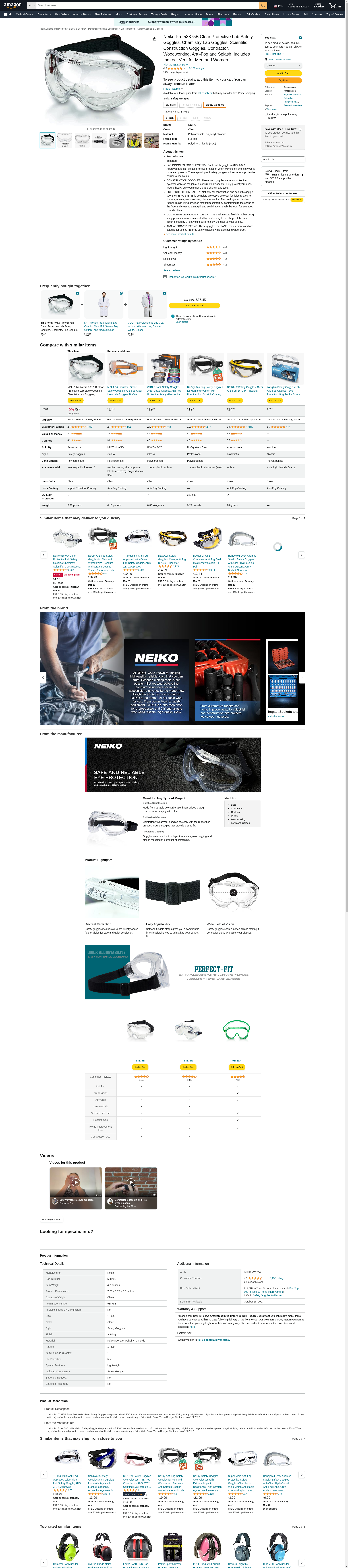 - FULL PROTECTION SAFETY: Not only for construction and scientific goggle use, the NEIKO 53875B is complete protective eyewear for fields related to doctors, nurses, woodworkers, chefs, or cooks]: The dual injected flexible rubber design lining provides maximum comfort by conforming to the shape of the face and creating a snug fit and seal that can easily be worn for extended periods of time.