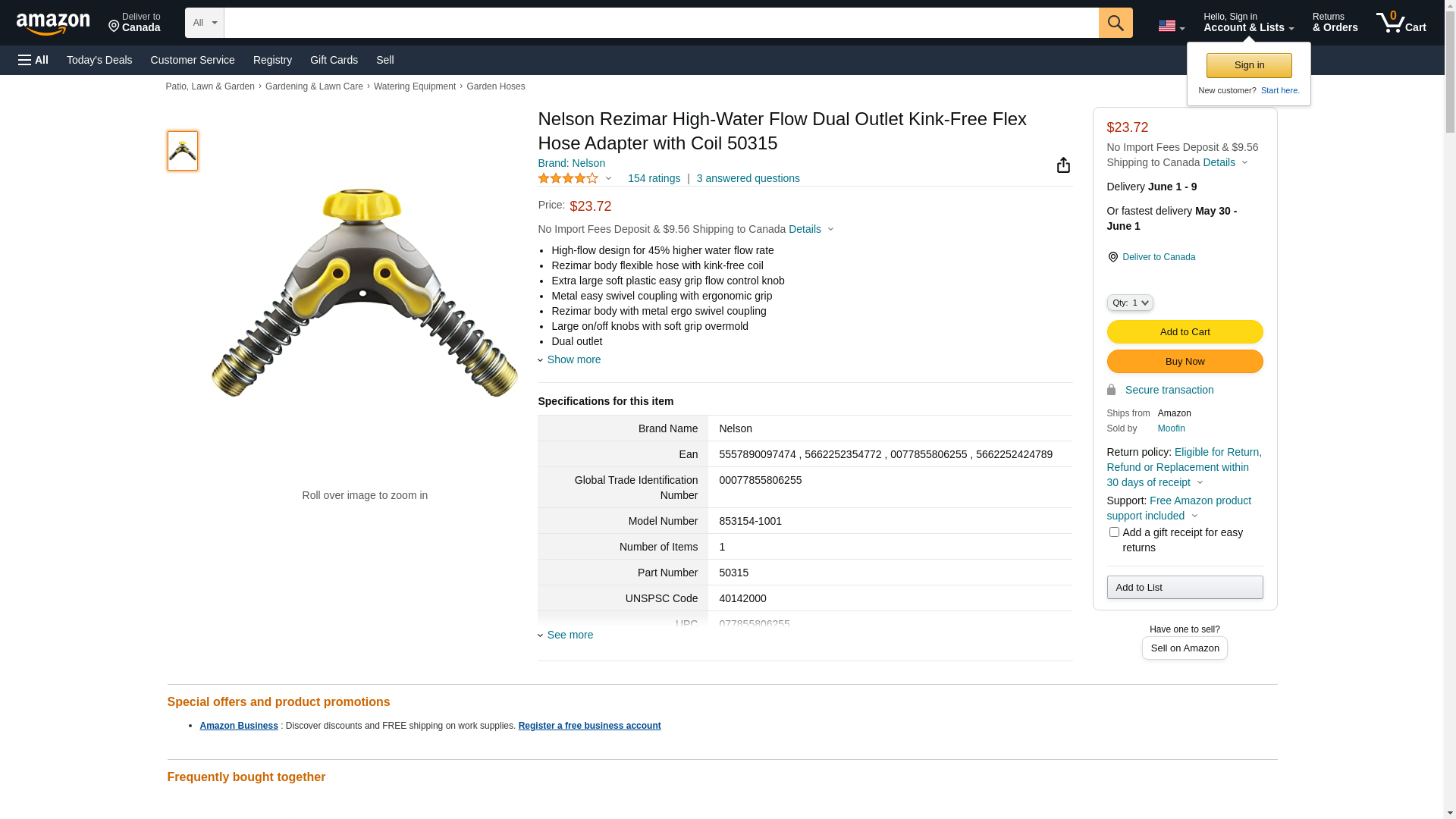 Nelson Rezimar High-Water Flow Dual Outlet Kink-Free Flex Hose Adapter with Coil 50315
