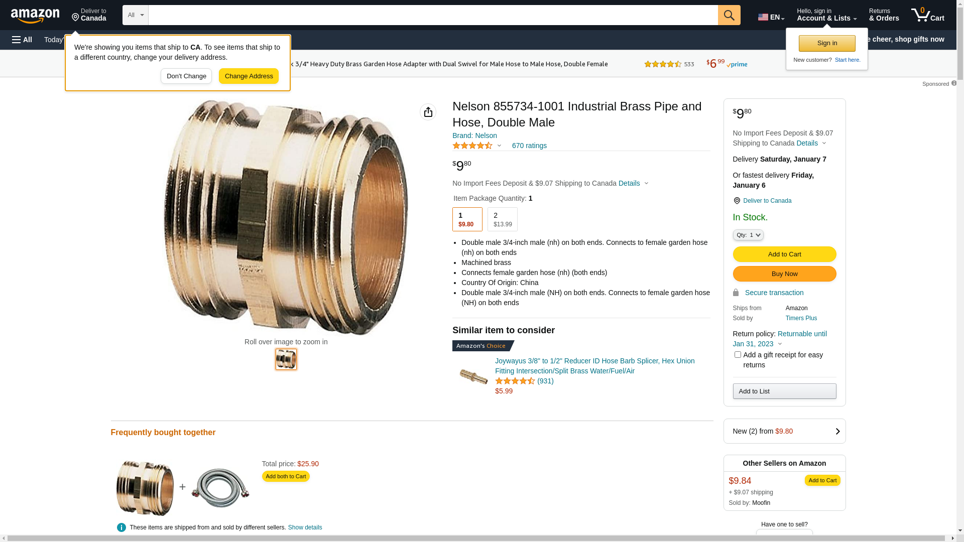 | Feature | Double male 3/4-inch male (nh) on both ends. Connects to female garden hose (nh) on both ends |