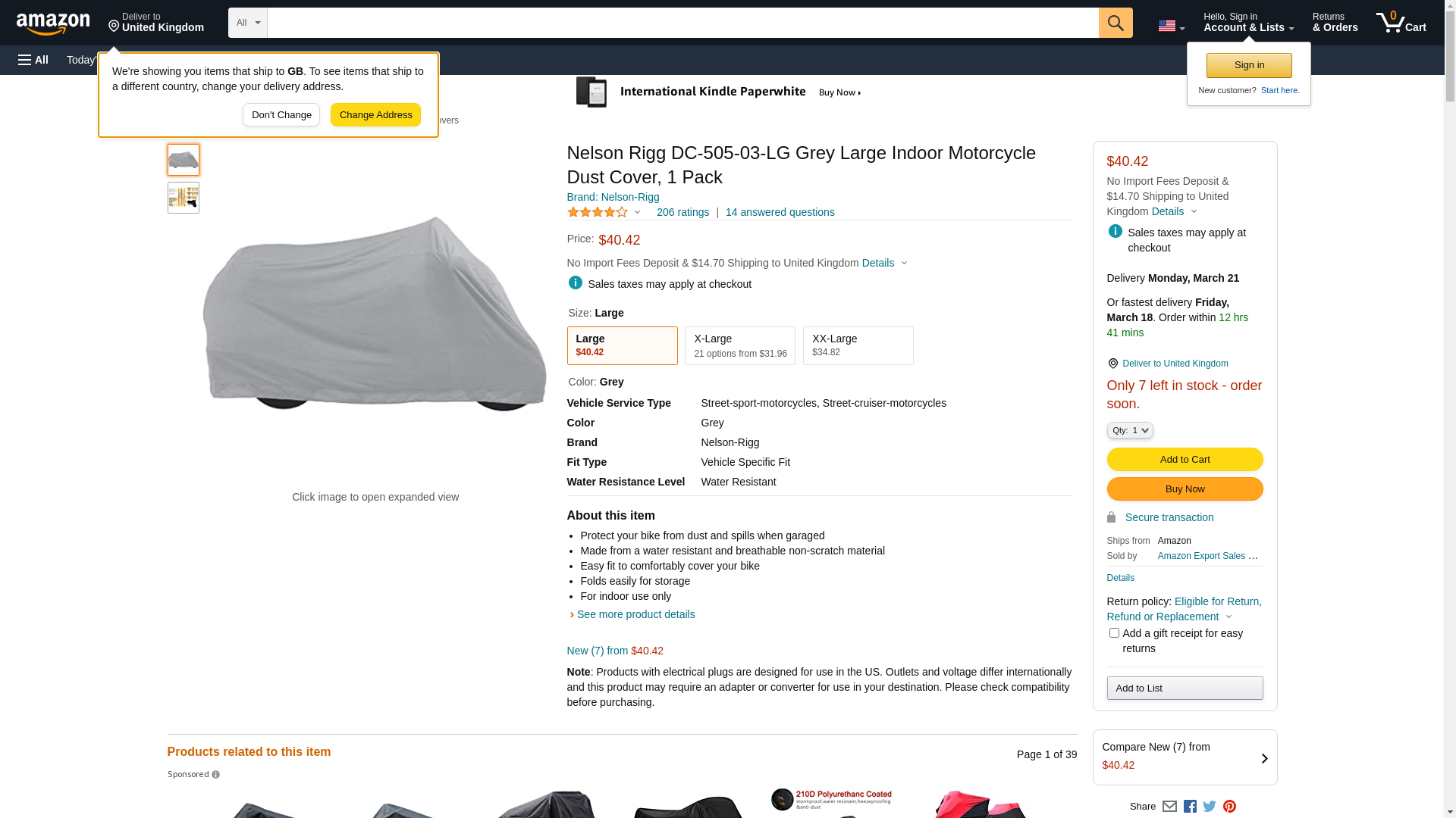 Nelson Rigg DC-505-03-LG Grey Large Indoor Motorcycle Dust Cover, 1 Pack
