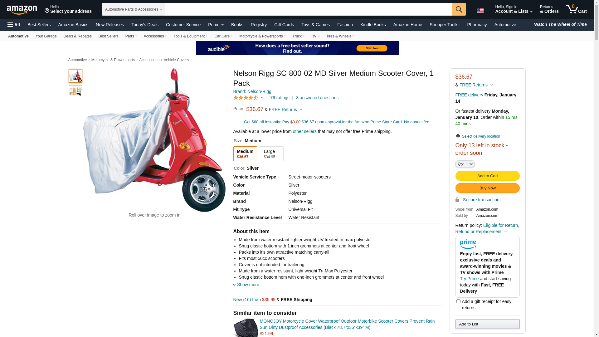 Nelson Rigg SC-800-02-MD Silver Medium Scooter Cover