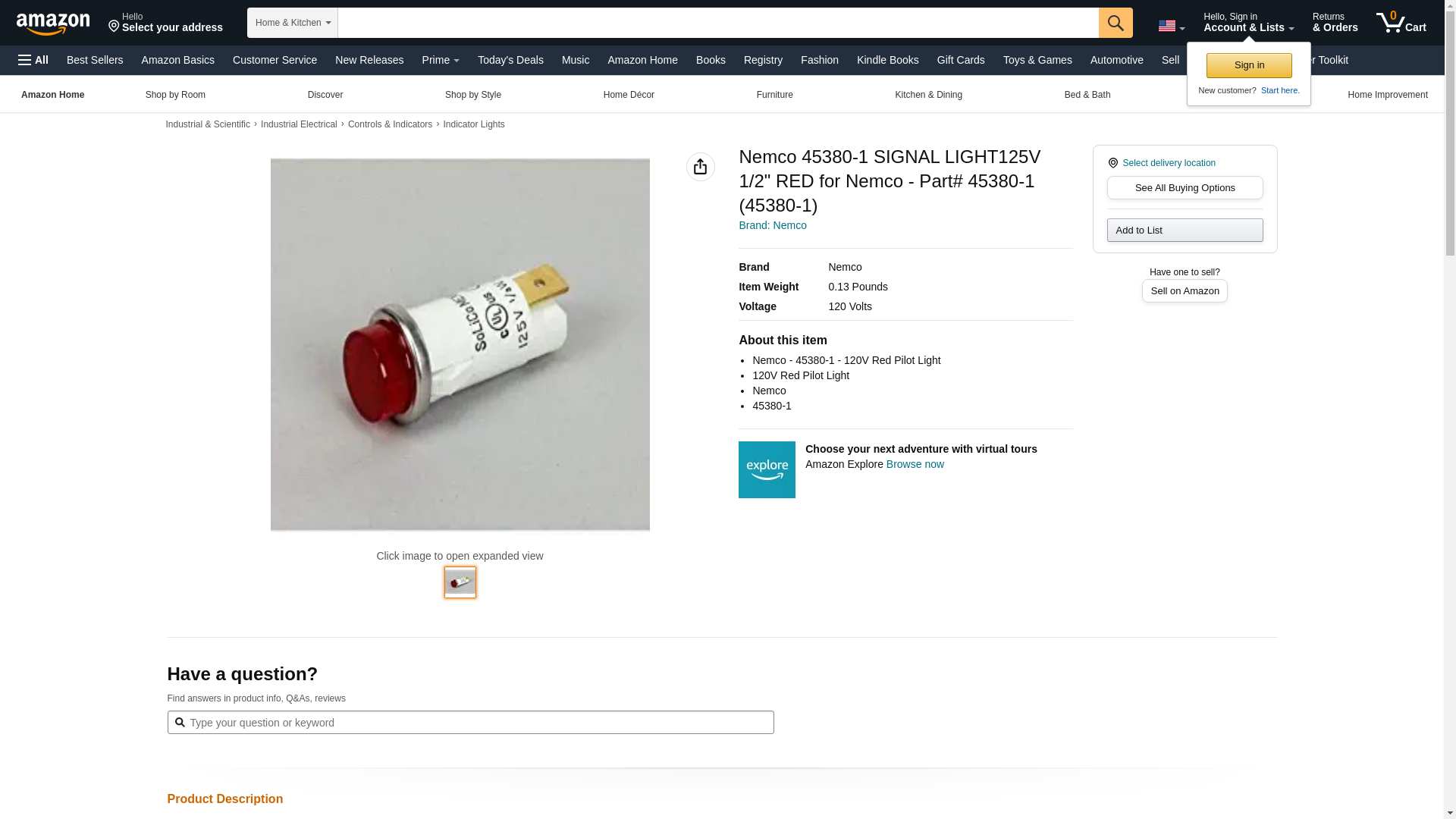 - Nemco - 45380-1 - 120V Red Pilot Light