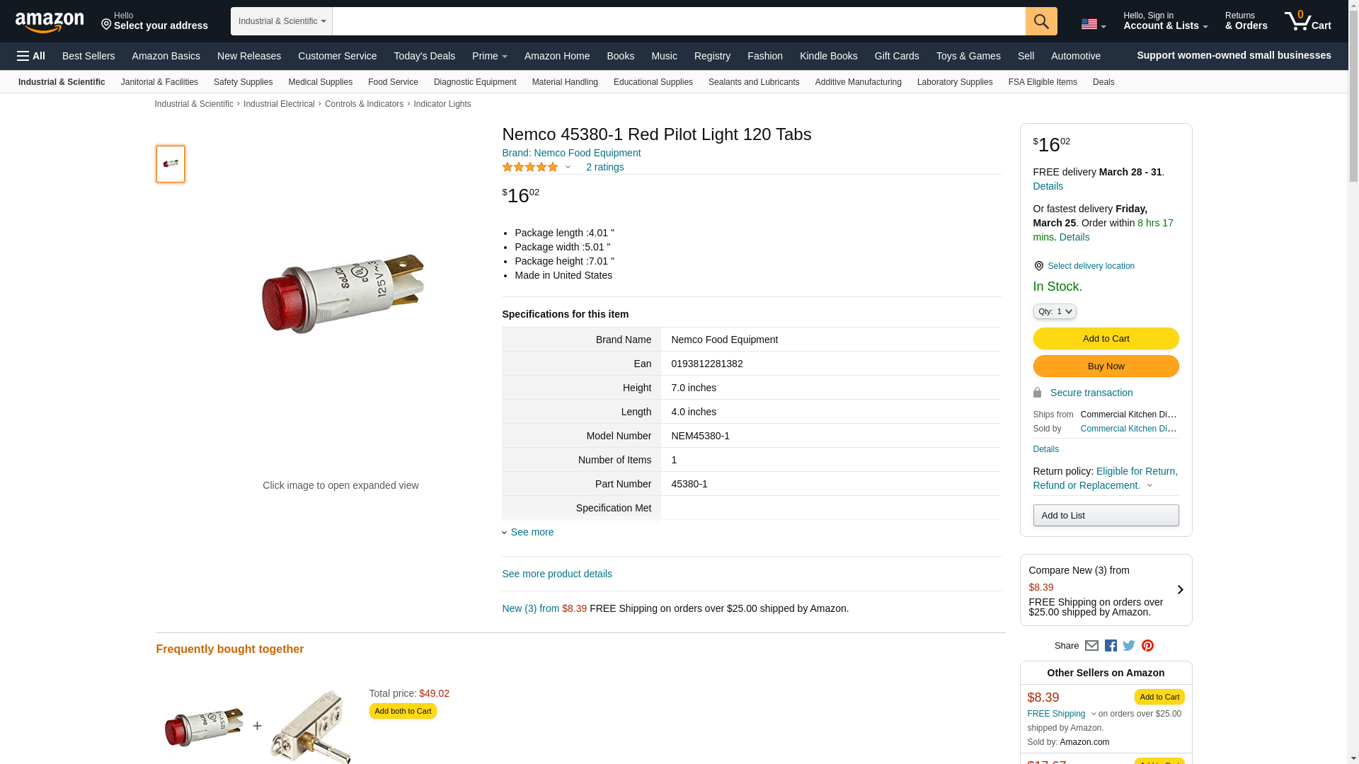 Nemco 45380-1 Pilot Light For Food Warmers w/ Red Raised Flat, .25-in Tab, Flat On Side, 125 V- 45380-1 - Nemco Nemco 45380-1 Pilot Light For Food Warmers W/ Red Raised Flat, .25" Tab, Flat On Side, 125 VNemco 45380-1 Pilot Light For Food Warmers w/ Red Raised Flat, .25-in Tab, Flat On Side, 125 V- 45380-1 - Nemco 128-453801, 592453801