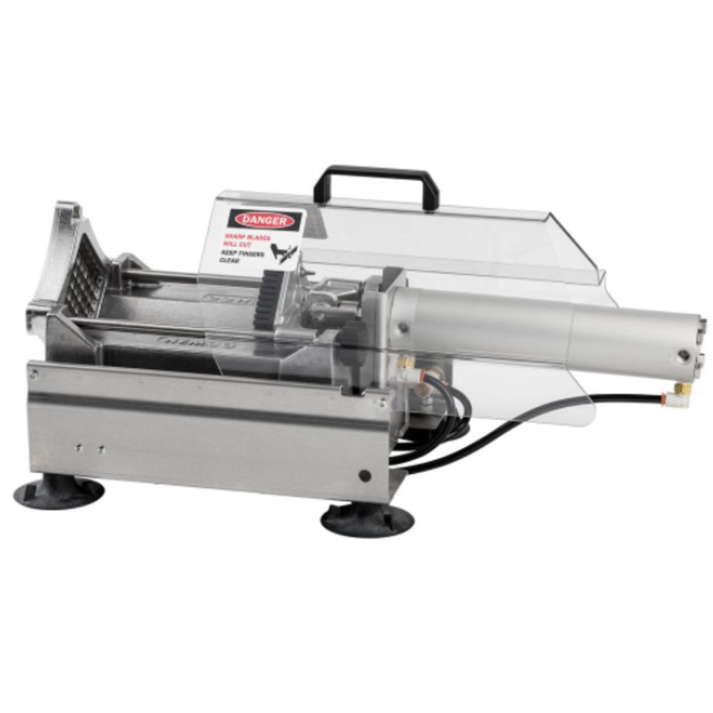 When the popularity of French fries meets your busiest rush times get more orders out and make more money with Nemco's Monster Airmatic FryKutter! 720 potatoes an hour? No sweat. Cut the monster potatoes. Cut more of them. And cut them at an incredible rate of speed - with absolutely no operator fatigue. The Monster Airmatic FryKutter is built to make quick work of extra large potatoes. Just feed the chamber and let the pneumatic cylinder do the work. NEMCO always designs its products with the operator in mind focusing on ergonomics safety and convenience.Model #: 56455-31/2" cutClear polycarbonate guard keeps operator hands free from cutting area when the drive cylinder is actuatedDurable cast aluminum and stainless steel construction throughout4 1/4" sq. cutting area accepts extra large potatoesSuction-cup feet provide required stability but can be easily lifted for convenient mobility