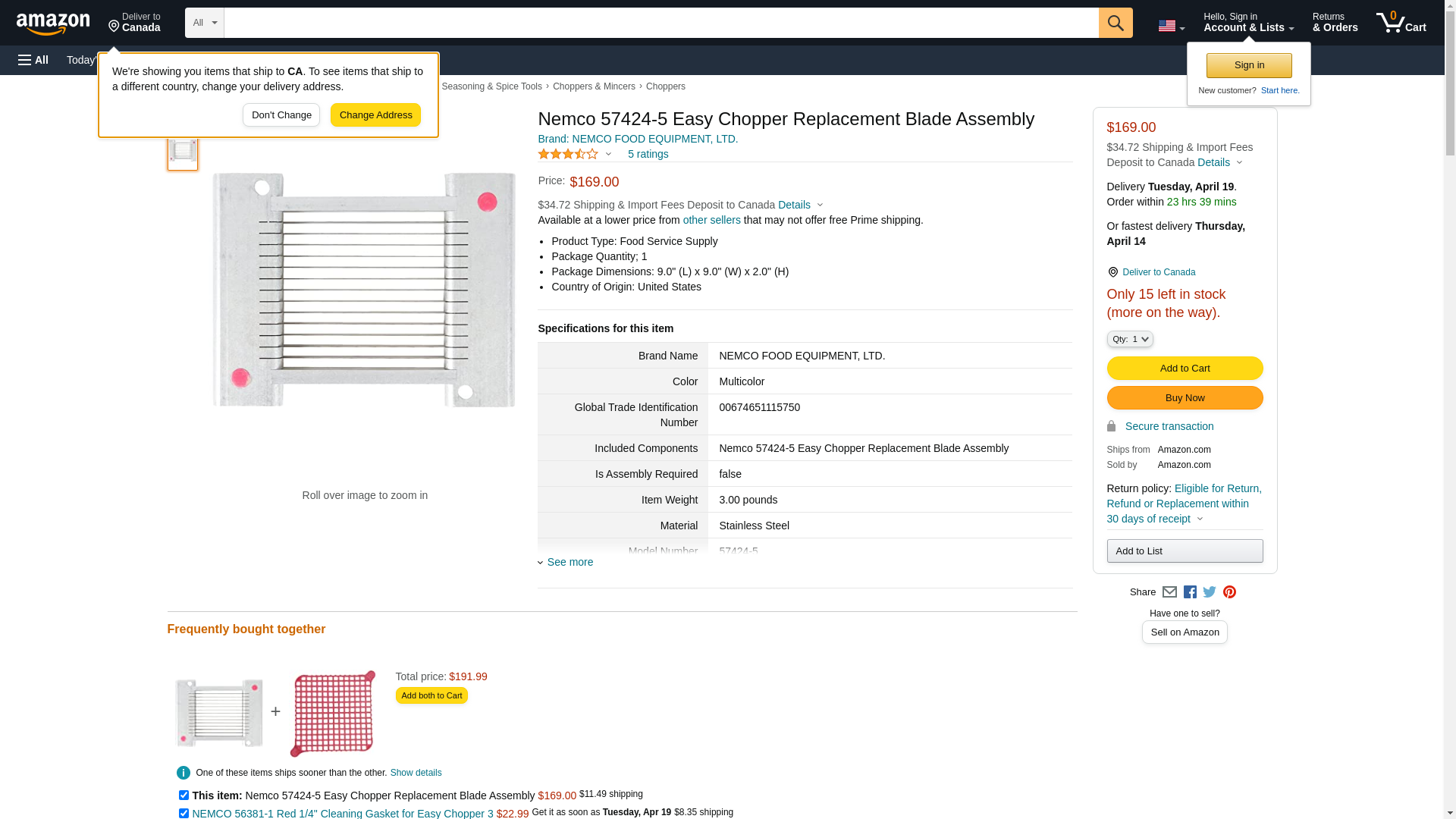 Nemco 57424-5 1/4" Easy Chopper III Blade and Holder Slice Assembly