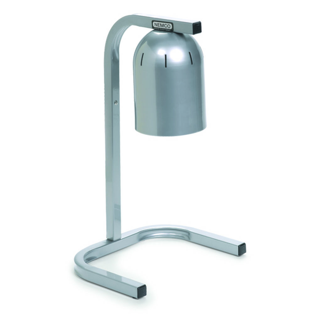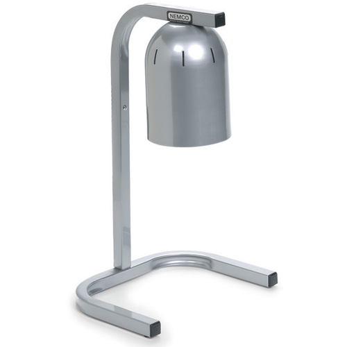 Nemco's Heat Lamp, compact, freestanding, infrared, single bulb, 120v/60/1ph, 250 watts, steel frame and aluminum hoods, white 250 watt infrared bulb standard (optional: red 250 watt infrared bulb or white shatter-resistant 250 watt bulb), UL, NSF.