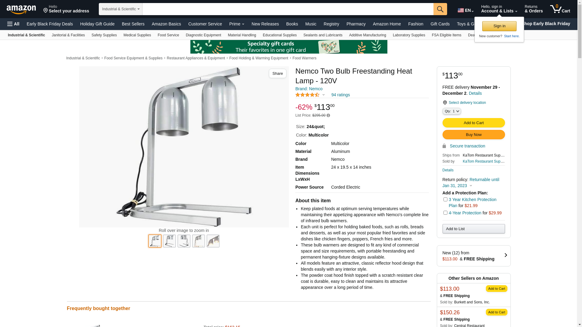 Nemco Heat Lamp, Bulb Type