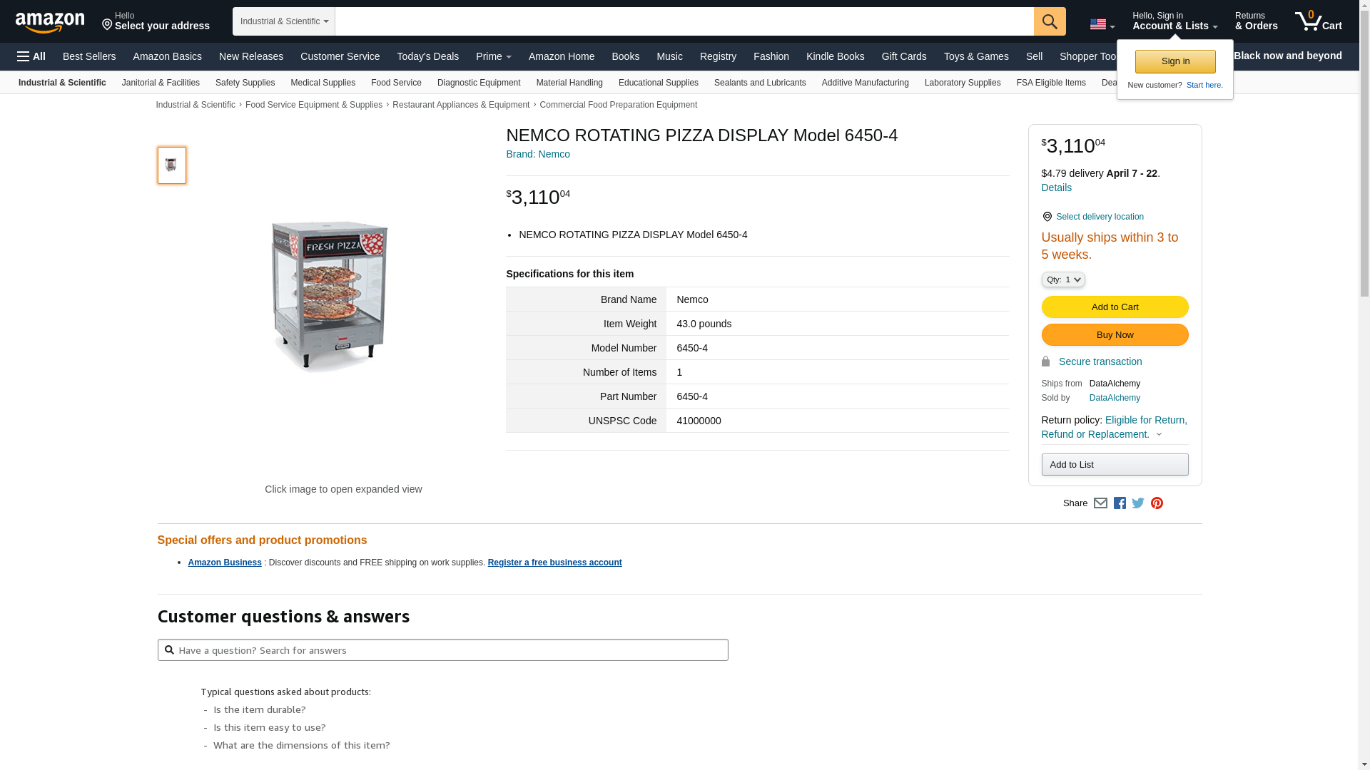 - NEMCO ROTATING PIZZA DISPLAY Model 6450-4