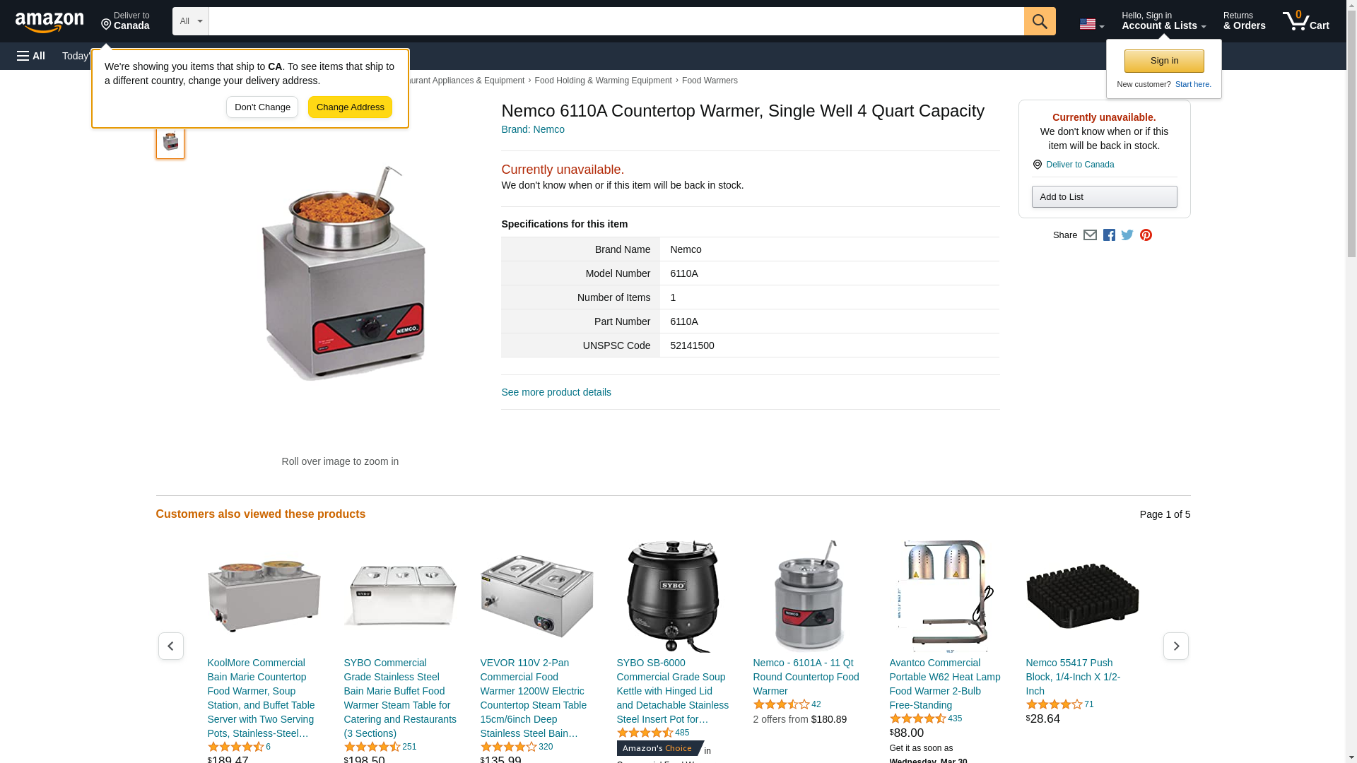 Nemco 6110A Countertop Warmer, Single Well 4 Quart Capacity