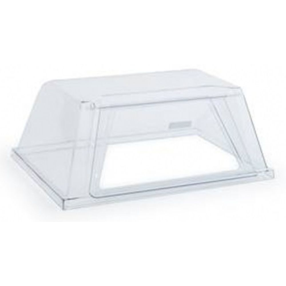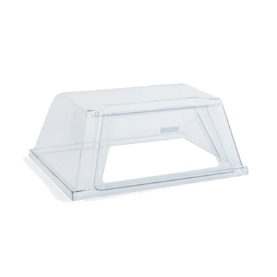 Polycarbonate guards have a high impact resistance and heat resistance for exceptional durability in the busiest environments. For added convenience, operators can temporarily rest buns and such on the flat top. The guard sits firmly on top of the grill, yet is easily removed for cleaning. Portects hot dogs from debris and people. Flat top allows for temporary storage of buns, etc. All self-serve guards include an access door. For use with 8036 Series Roller Grills. NSF Listed. Model: 8036GD. Dimensions: 30"W x 17.25"D x 9"H. Material: Polycarbonate.