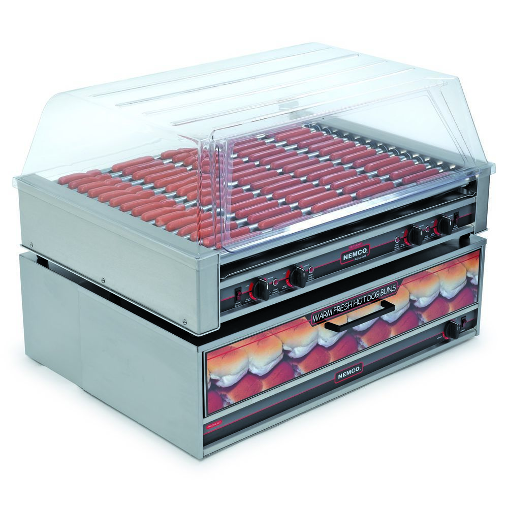 Nemco 8075 Roll-A-Grill, Hot Dog Grill, 75 Hot Dog Capacity (1500 Per Hour), Chrome Rollers