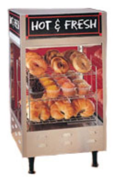 Nemco 6454 Heated Merchandiser, 18-1/2"W x 18-1/2"D x 33-7/8"H, Three 15" Square Shelves