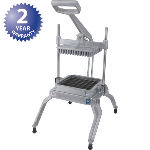 Nemco Lettuce Kutter - #N55650Easy LettuceKutter, 1" x 1" square, scalloped blades, interlocked blades avoid flexing, replaceable blades, angled, cast aluminum legs with no-slip feet, manual locking pin keeps pusher block safely i