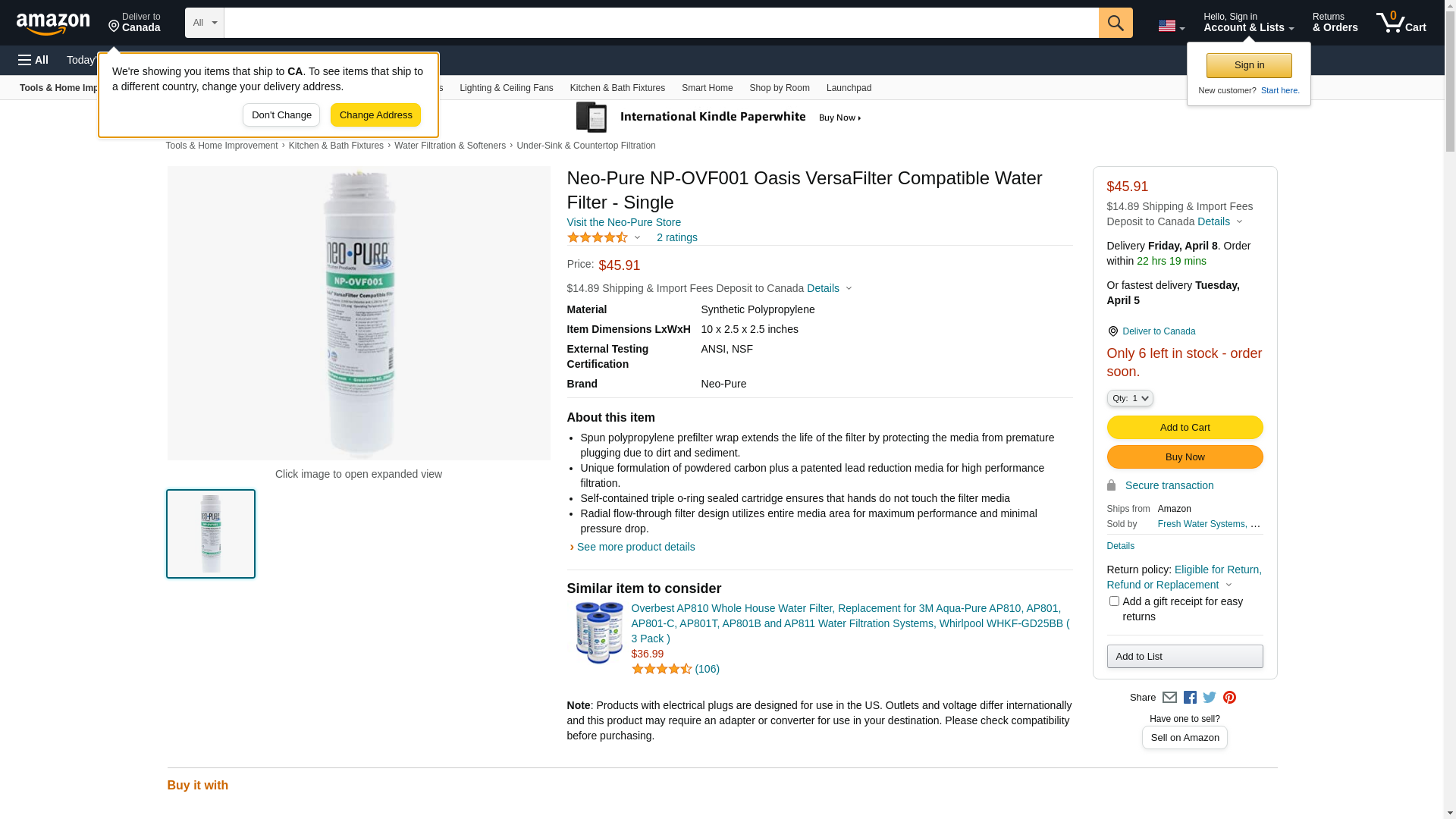 Neo-Pure NP-OVF001 Oasis VersaFilter & MURDOCK/ACORN 7012-313-000 WF1 Compatible Water Filter - Single