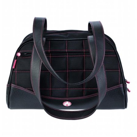 The Sumo Large Duffel... It just wants to be held. <br /> <br />Carry a little or a lot. Sizes hold from day to day items, to overnight items. <br /> <br /> <li>Premium ballistic nylon with faux-leather detail.<br /></li> <li>Interior pockets for wallet, pens, phone.<br /></li> <li>Unique quilted design.<br /></li> <li>Exterior hidden zipper pocket.<br /></li> <li>Printed liner.<br /></li> <li>Soft faux-leather shoulder straps.<br /></li> <li>Color: Black with Pink Stitching .<br /></li> <li>Material: Ballistic Nylon.<br /></li> <li> : Lifetime.<br /></li> <li>Dimensions: 13.75" x 7.5" x 8.5".- SKU: MBED174</li>