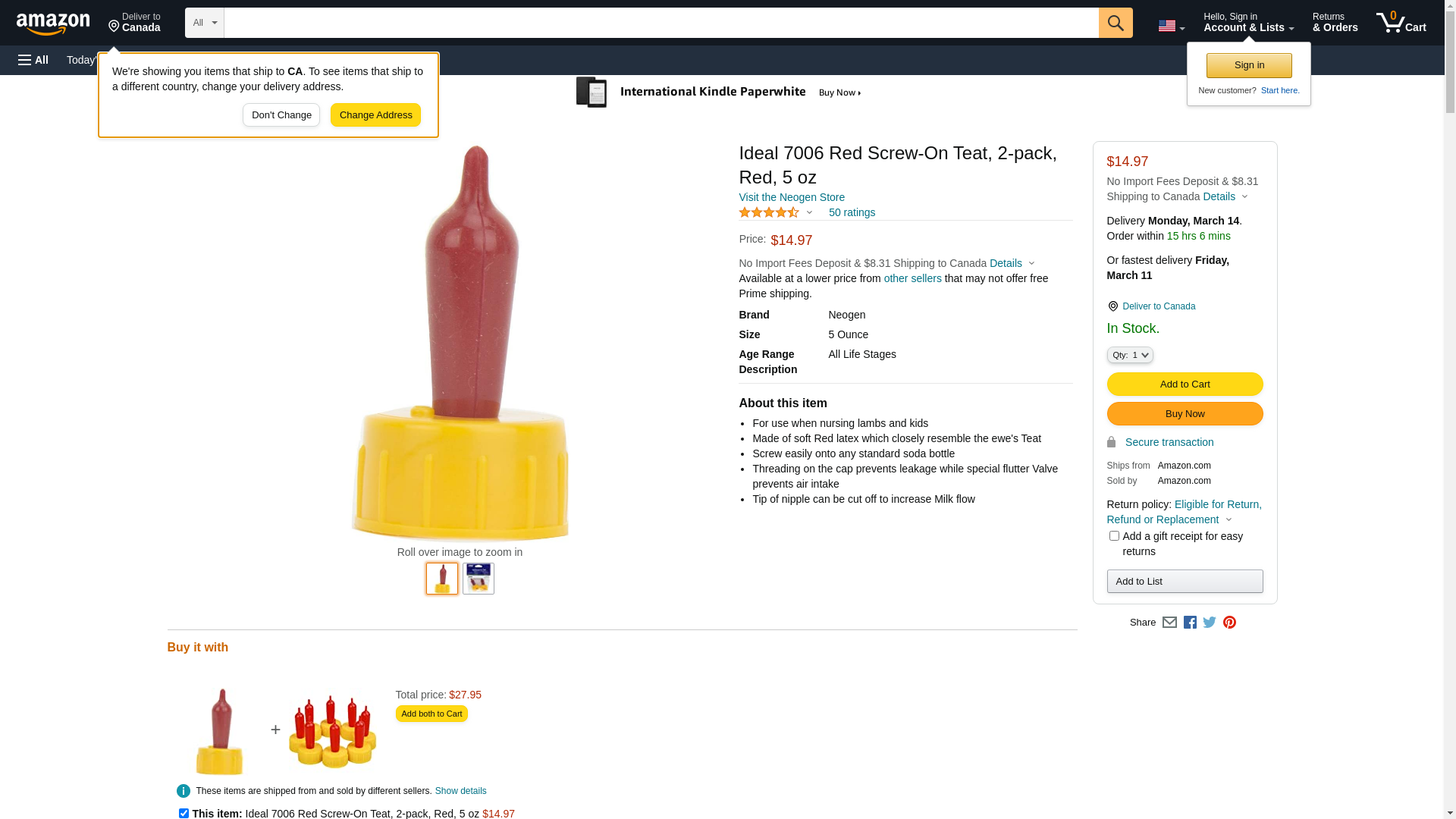 Ideal 7006 Red Screw-On Teat, 2-pack, Red, 5 oz