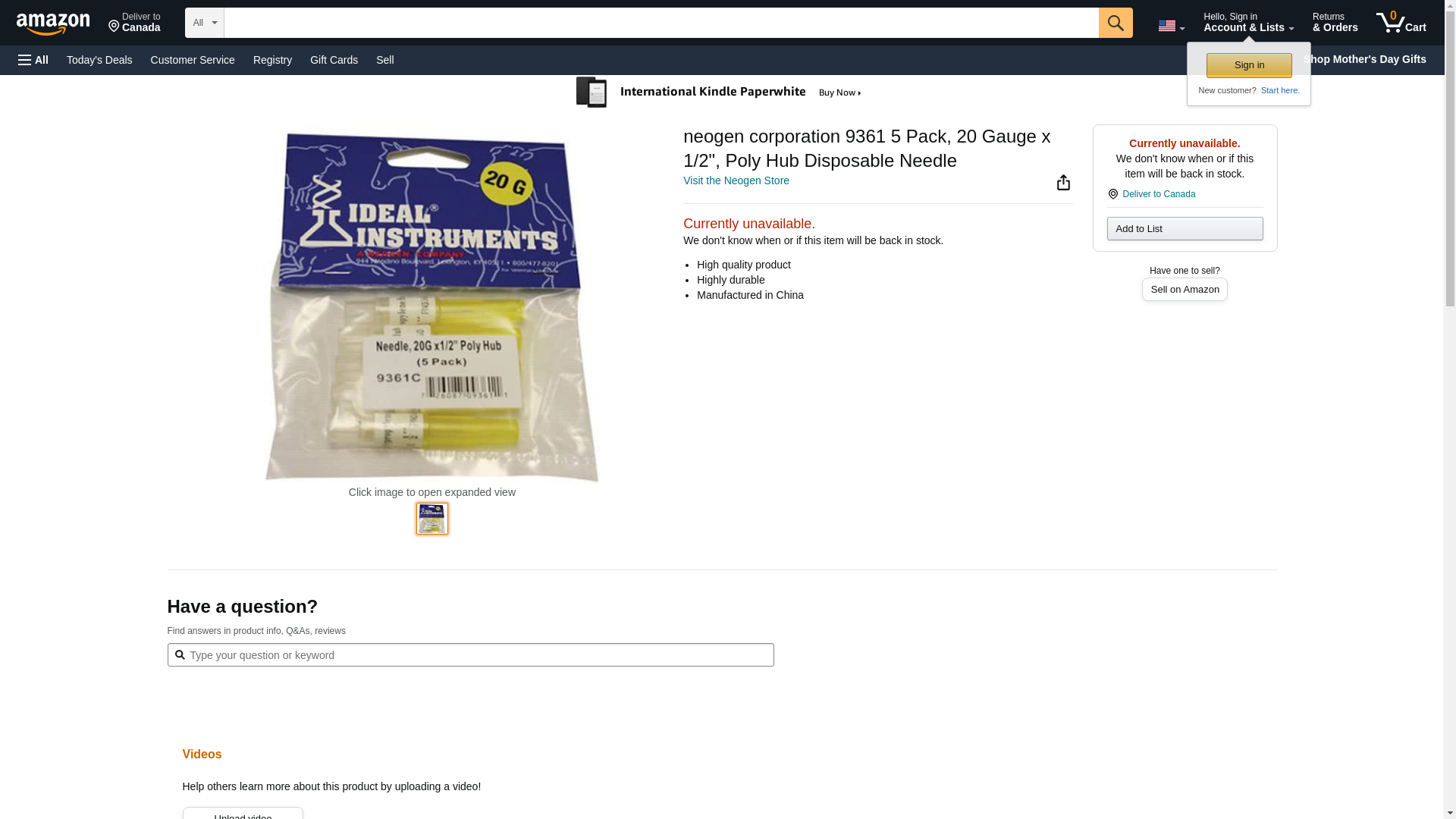neogen corporation 9361 5 Pack, 20 Gauge x 1/2", Poly Hub Disposable Needle